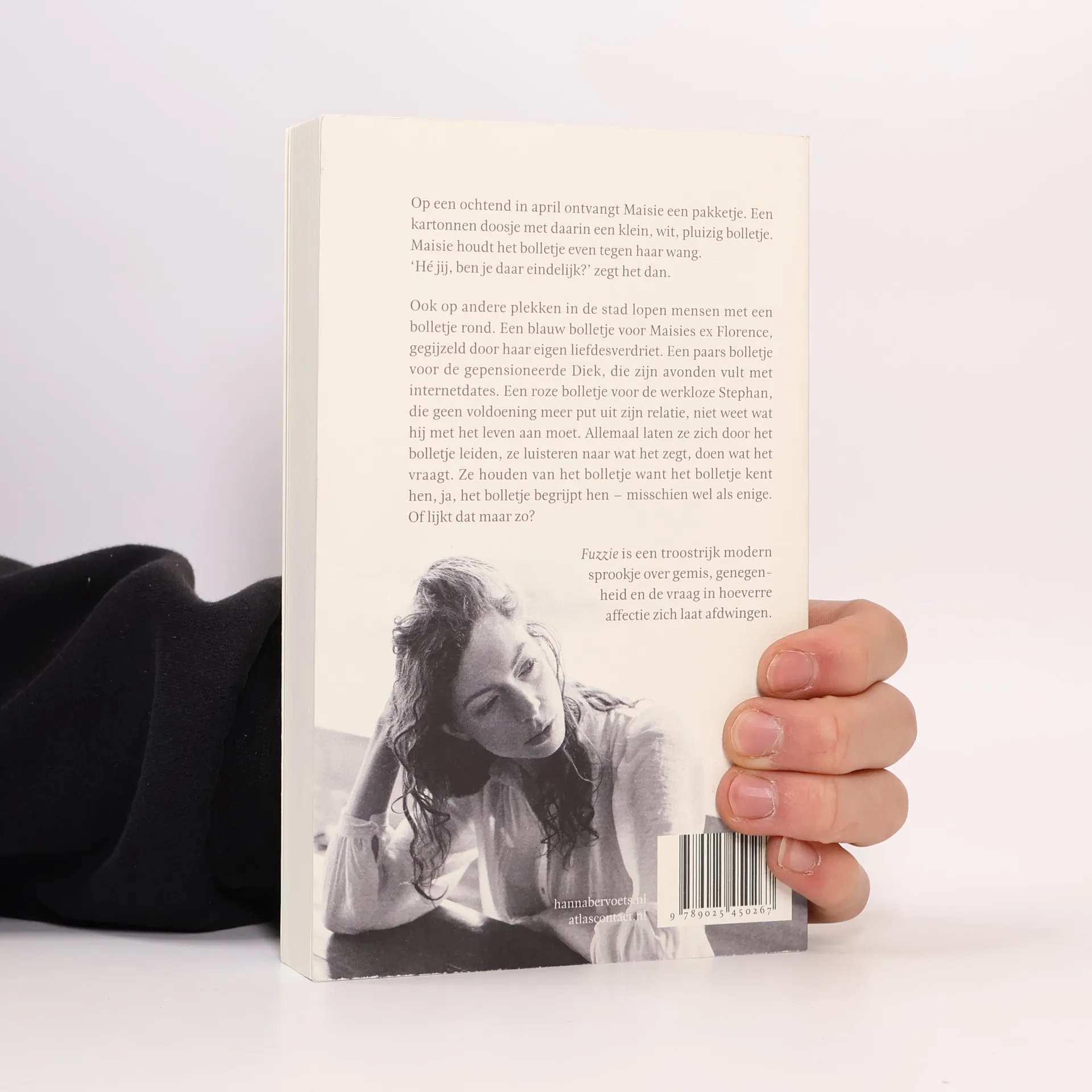 Op een ochtend in april ontvangt Maisie een pakketje. Een kartonnen doosje met daarin een klein, wit, pluizig bolletje. Maisie houdt het bolletje even tegen haar wang. ‘Hé jij, ben je daar eindelijk?’ zegt het dan. Ook op andere plekken in de stad lopen mensen met een bolletje rond. Een blauw bolletje voor Maisies ex Florence, gegijzeld door haar eigen liefdesverdriet. Een paars bolletje voor de gepensioneerde Diek, die zijn avonden vult met internetdates. Een roze bolletje voor de werkloze Stephan, die geen voldoening meer put uit zijn relatie, niet weet wat hij met het leven aan moet. Allemaal laten ze zich door het bolletje leiden, ze luisteren naar wat het zegt, doen wat het vraagt. Ze houden van het bolletje want het bolletje kent hen, ja, het bolletje begrijpt hen – misschien wel als enige. Of lijkt dat maar zo? En waar komt het bolletje eigenlijk vandaan? Fuzzie is een modern-realistisch sprookje over gemis, genegenheid en de vraag in hoeverre affectie zich laat afdwingen.