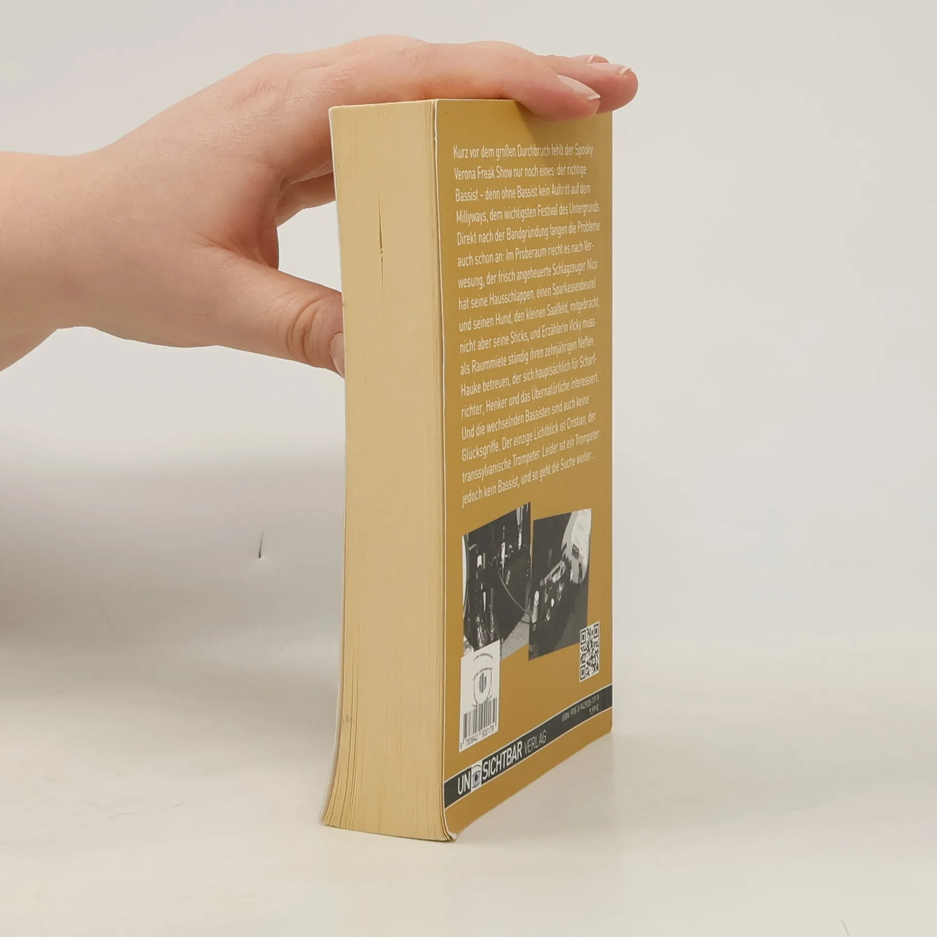 Kurz vor dem großen Durchbruch fehlt der Spooky Verona Freak Show nur noch der richtige Bassist – denn ohne Bassist kein Auftritt auf dem Millyways, dem wichtigsten Festival des Untergrunds. Direkt nach der Bandgründung fangen die Probleme auch schon Im Proberaum riecht es nach Verwesung, der frisch angeheuerte Schlagzeuger Nico hat seine Hausschlappen, einen Sparkassenbeutel und seinen Hund, den kleinen Saalfeld, mitgebracht, nicht aber seine Sticks, und Vicky muss als Raummiete ständig ihren zehnjährigen Neffen Hauke betreuen, der sich hauptsächlich für Scharfrichter, Henker und das Übernatürliche interessiert. Und die wechselnden Bassisten sind auch keine Glücksgriffe. Der einzige Lichtblick ist Cristian, der transsylvanische Trompeter. Leider ist ein Trompeter jedoch kein Bassist, und so geht die Suche weiter…