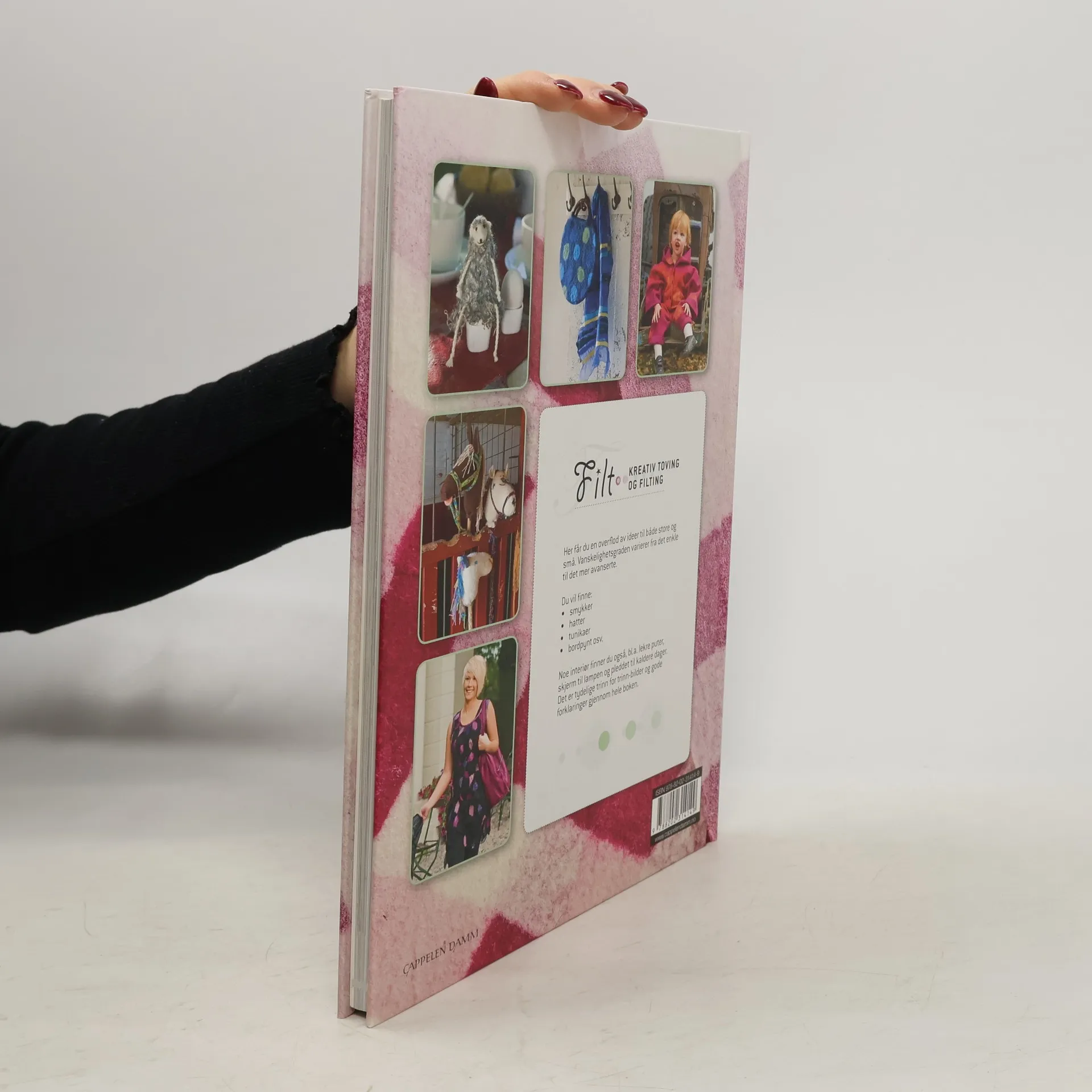 Trin-for-trin anvisninger til fremstilling af filt samt opskrifter på hvordan man laver smykker, hatte, tunikaer, bordpynt, puder og plaider