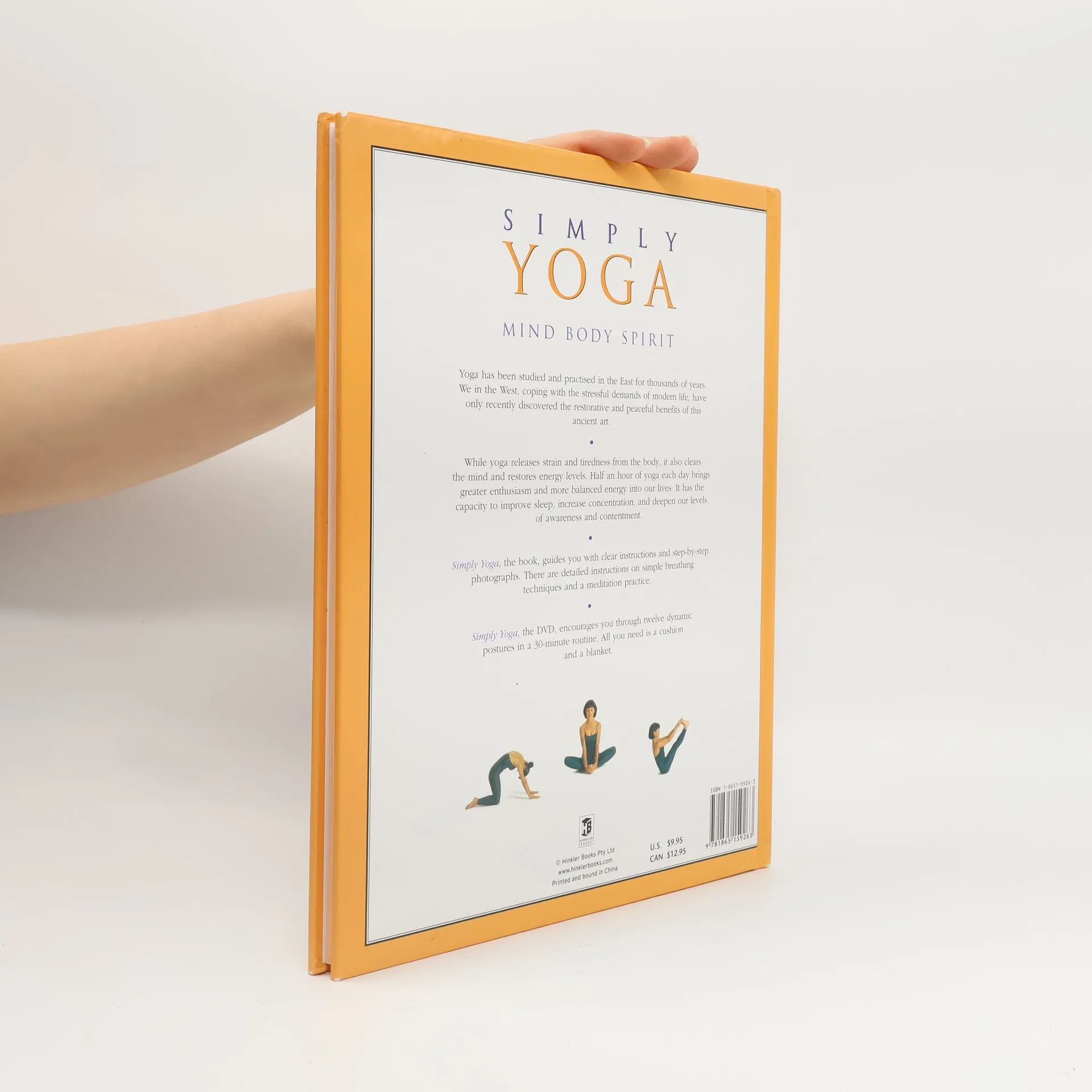 Yoga has been studied and practised in the East for thousands of years. We in the West, coping with the stressful demands of modern life, have only recently discovered the restorative and peaceful benefits of this ancient art. While yoga releases strain and tiredness from the body, it also clears the mind and restores energy levels. Half an hour of yoga each day brings greater enthusiasm and more balanced energy into our lives. It has the capacity to improve sleep, increase concentration, and deepen our levels of awareness and contentment. Simply Yoga, the book, guides you with clear instructions and step-by-step photographs. There are detailed instructions on simple breathing techniques and a meditation practice. Simply Yoga, the DVD, encourages you through twelve dynamic postures in a 30-minute routine. All you need is a cushion and a blanket. Book jacket.