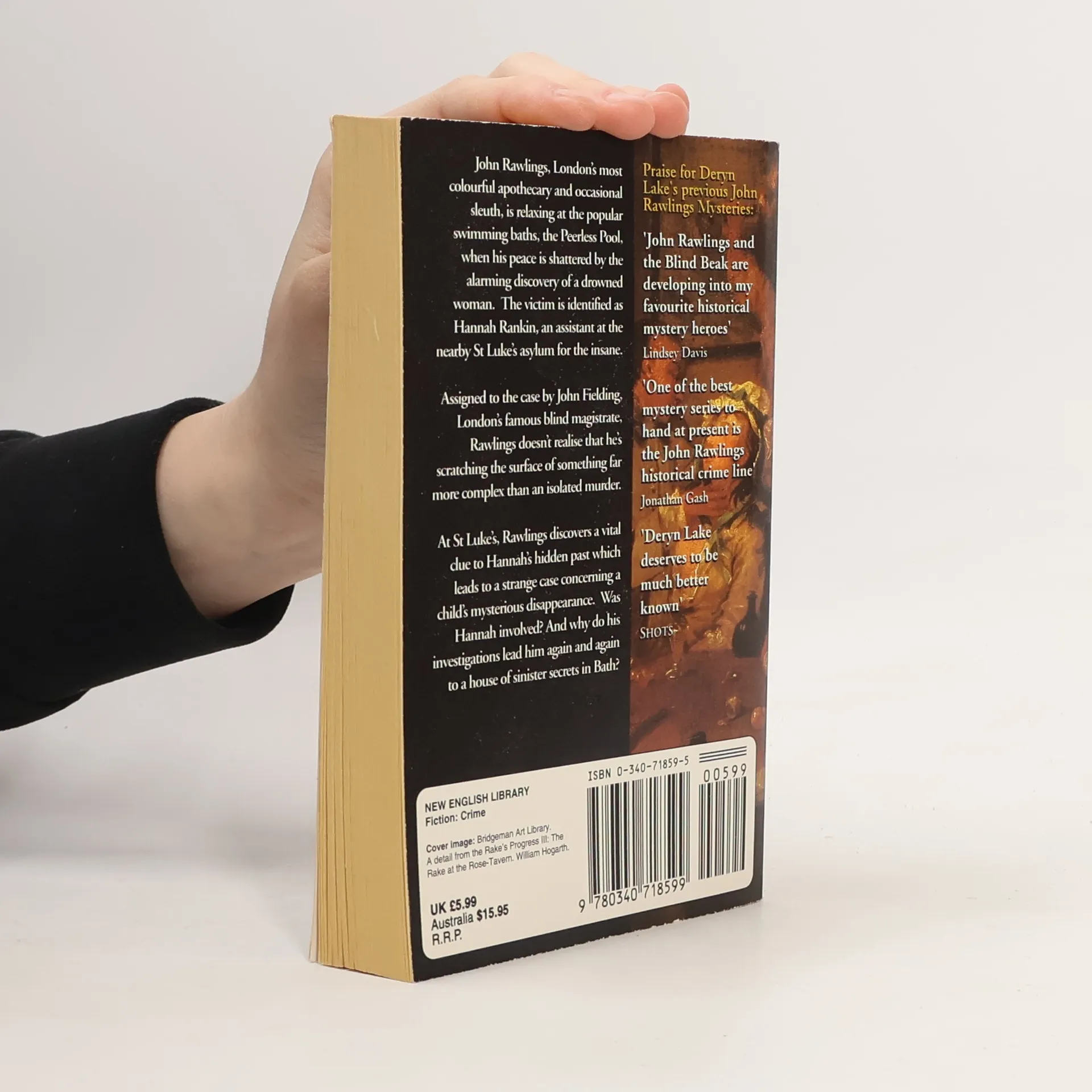 John Rawlings, the brilliant young 18th Century apothecary, and London's famous magistrate, the Blind Beak, look set for their most intriguing and perilous adventure yet. After the discovery of a body in the popular swimming baths, the Peerless Pool, they find themselves mixed up in more than just a spot of fishing. Who is the mysterious Hannah and could her murder possibly be connected to the disappearance of two children, long ago? London's most colourful apothecary finds himself in more danger than ever before as he struggles to discover whose evil hand lies behind the trail of death and despair.