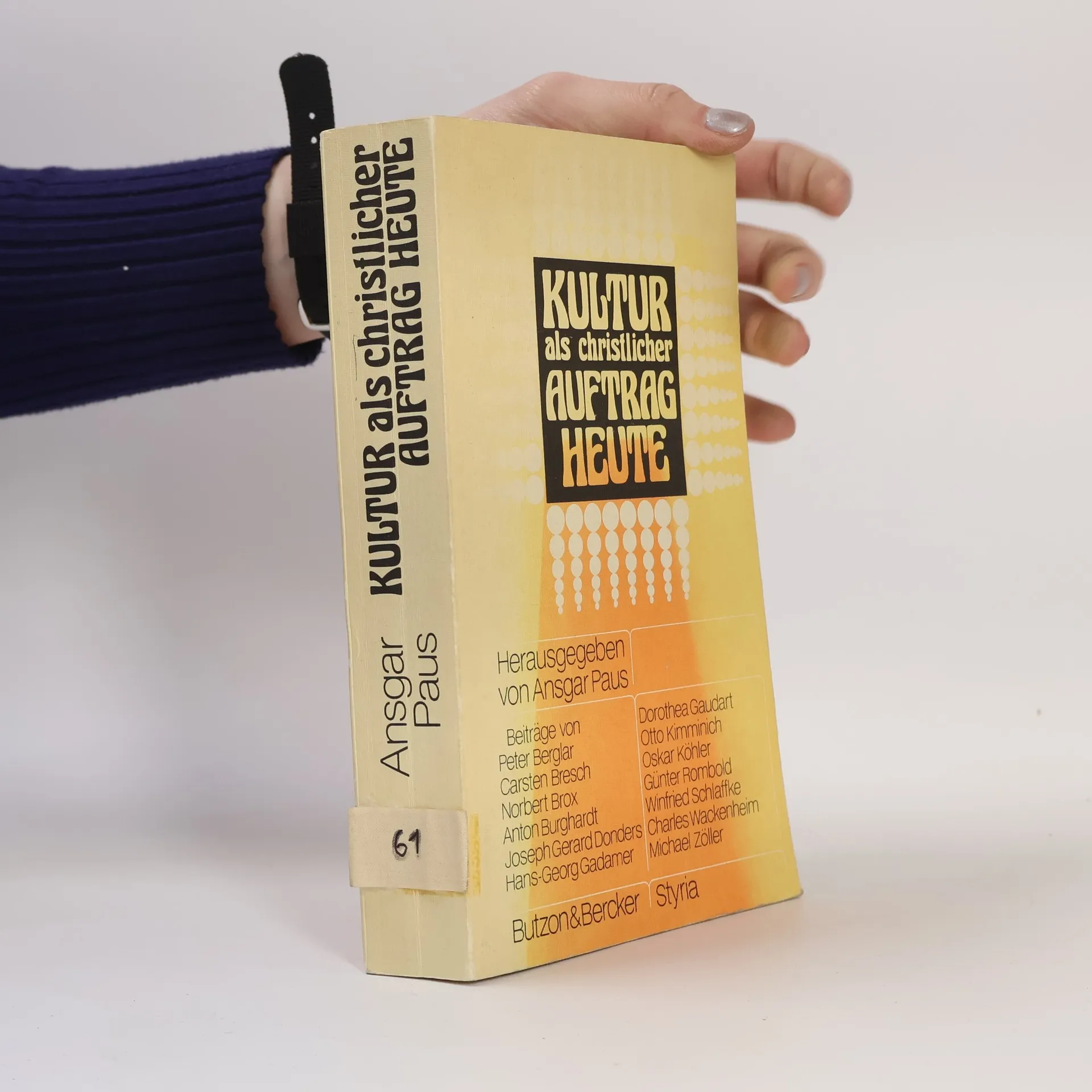 Kultur als christlicher Auftrag heute, Ansgar Paus, Peter Berglar, Carsten Bresch, Norbert Brox, Anton Burghardt, Joseph Gerard Donders, Hans-Georg Gadamer, Dorothea Gaudart, Otto Kimminich, Oskar Kohler, Günter Rombold, Winfried Schlaffke, Charles Wackenheim, Michael Zoller