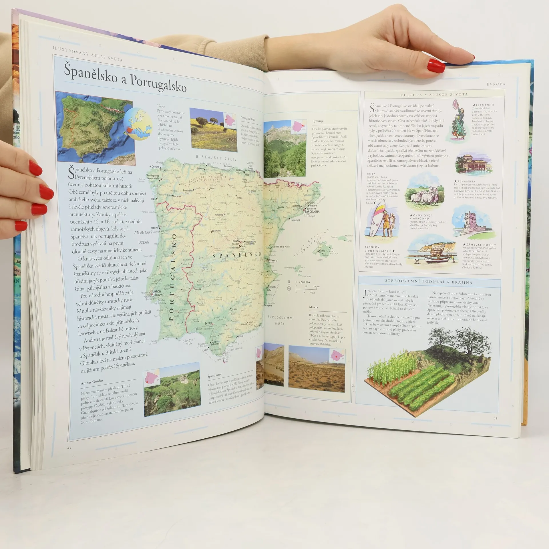 Vedle fyzických map obsahuje řadu informací z hospodářského a politického zeměpisu. Data a fakta jsou bohatě doplněna barevnými ilustracemi, fotografiemi i satelitními snímky.