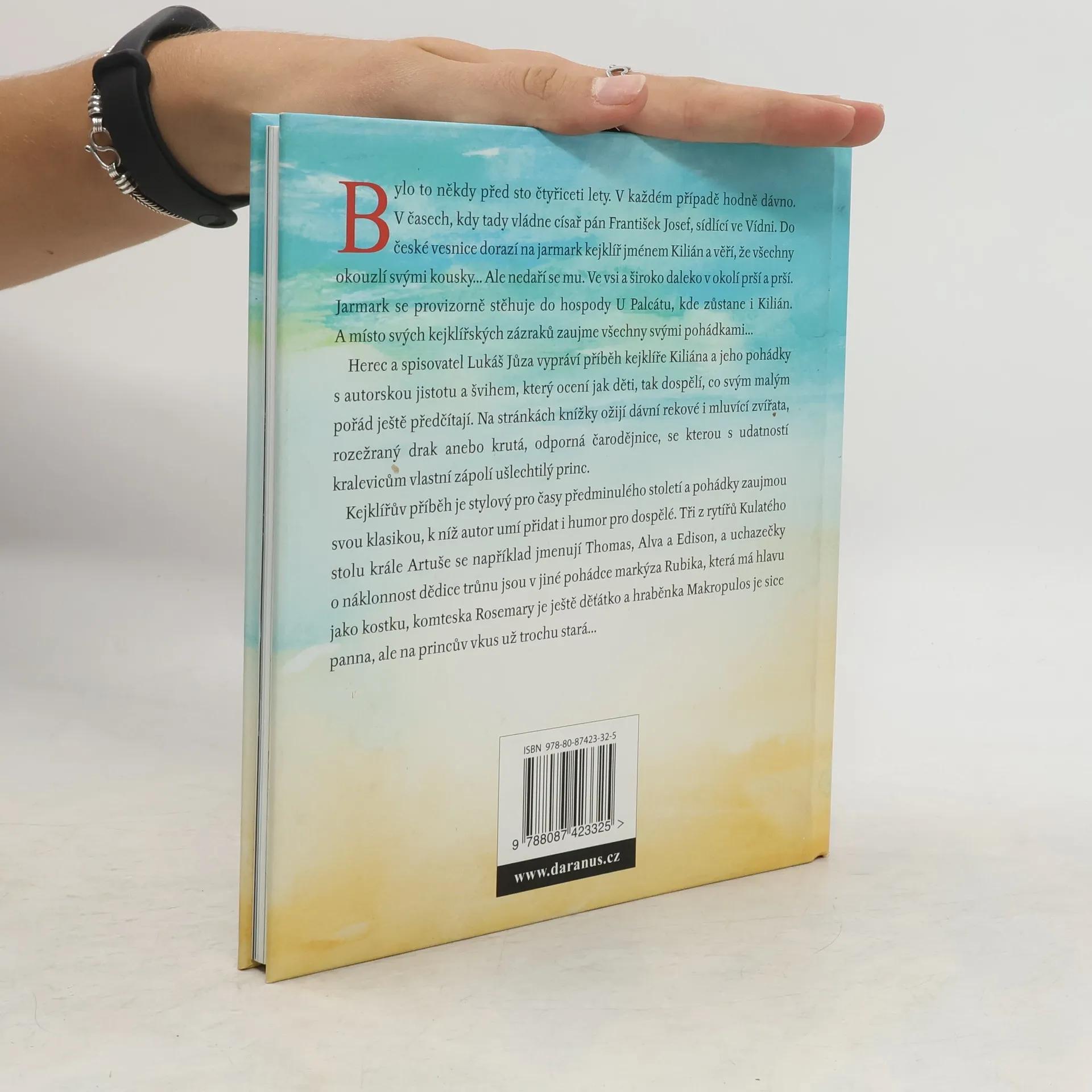 Bylo to někdy před sto čtyřiceti lety. V každém případě hodně dávno. V časech, kdy tady vládne císař pán František Josef, sídlící ve Vídni. Do české vesnice dorazí na jarmark kejklíř jménem Kilián a věří, že všechny okouzlí svými kousky... Ale nedaří se mu. Ve vsi a široko daleko v okolí prší a prší. Jarmark se provizorně stěhuje do hospody U Palcátu, kde zůstane i Kilián. A místo svých kejklířských zázraků zaujme všechny svými pohádkami... Herec a spisovatel Lukáš Jůza vypráví příběhy kejklíře Kiliána s autorskou jistotu a švihem, který ocení jak děti, tak dospělí, kteří svým malým pořád ještě předčítají. Na stránkách knížky ožijí dávní rytíři i mluvící zvířata, rozežraný drak anebo krutá, odporná čarodějnice, se kterou s udatností kralevicům vlastní zápolí ušlechtilý princ. Kejklířův příběh je stylový pro časy předminulého století a pohádky zaujmou svou klasikou, k níž autor umí přidat i humor pro dospělé. Pohádku doprovodila ilustracemi autorova manželka Petra Jůzová, dívčím jménem Vykoukalová, zkušená scénografka a kreslířka, která má s knižními ilustracemi čtrnáctiletou zkušenost.