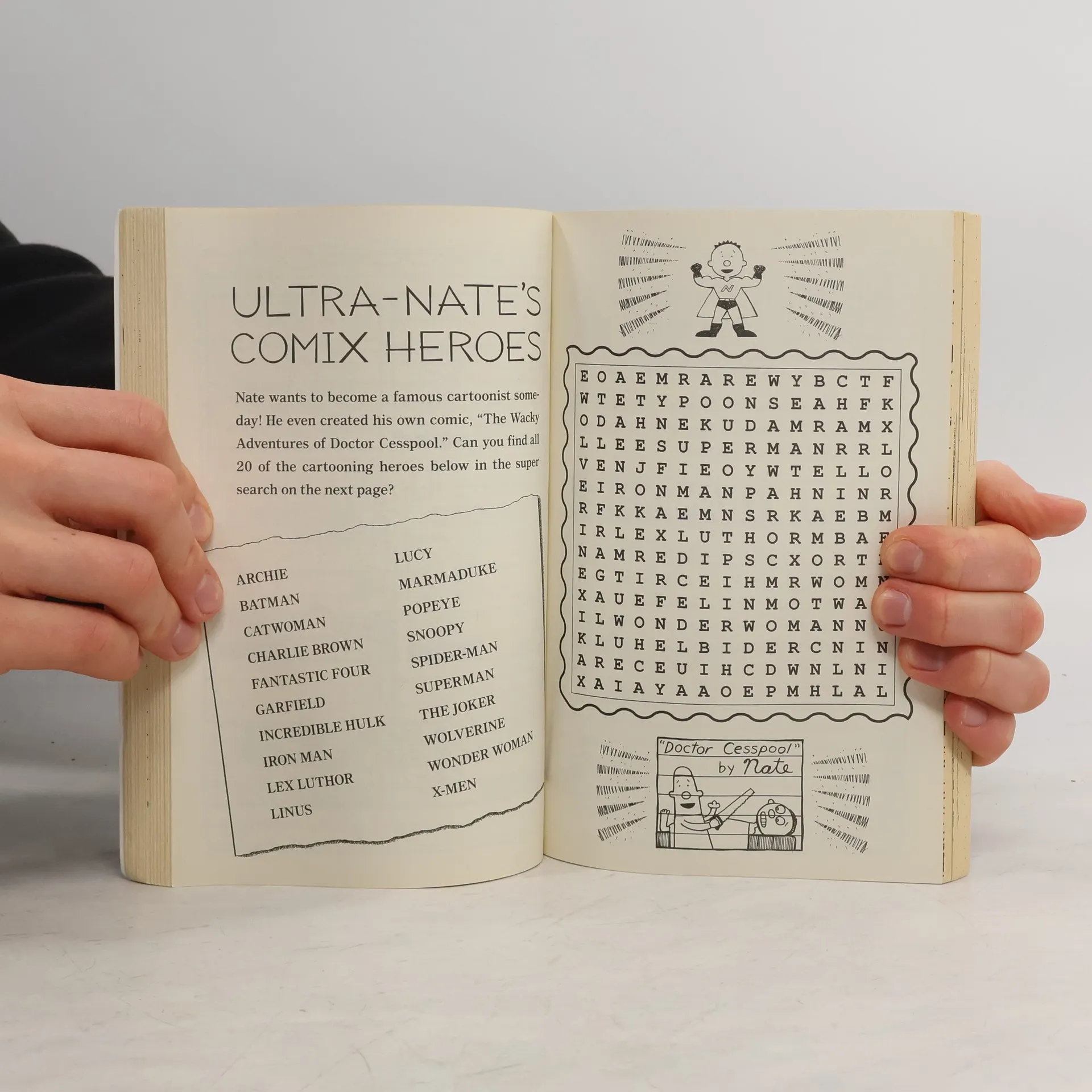 This Big Nate activity book is bursting with exclusive activities. Includes mazes, sudoku, crossword puzzles, doodle games, comics, secrets codes, and much more! Nate may not be Joe Honor Roll, but he knows he's meant for big fun. He's always up for scribbling games, jokes, laughs, and creating comics. And now you can join him! There is plenty of space for kids to get creative, and all the favorite characters from Nate's <em>New York Times</em> bestselling world are included—the know-it-all Gina; Nate's best buddies, Francis and Teddy; his rival, Artur; and his least favorite teacher, Mrs. Godfrey, aka Godzilla. Nate's world pops off the pages with more than 500 black-and-white illustrations that you get to help create. An awesome way to guarantee 100% relief from boredom—learn to doodle, draw, and write the Big Nate way! <em>Diary of a Wimpy Kid</em> author Jeff Kinney says, "<em>Big Nate</em> is funny, big time!"