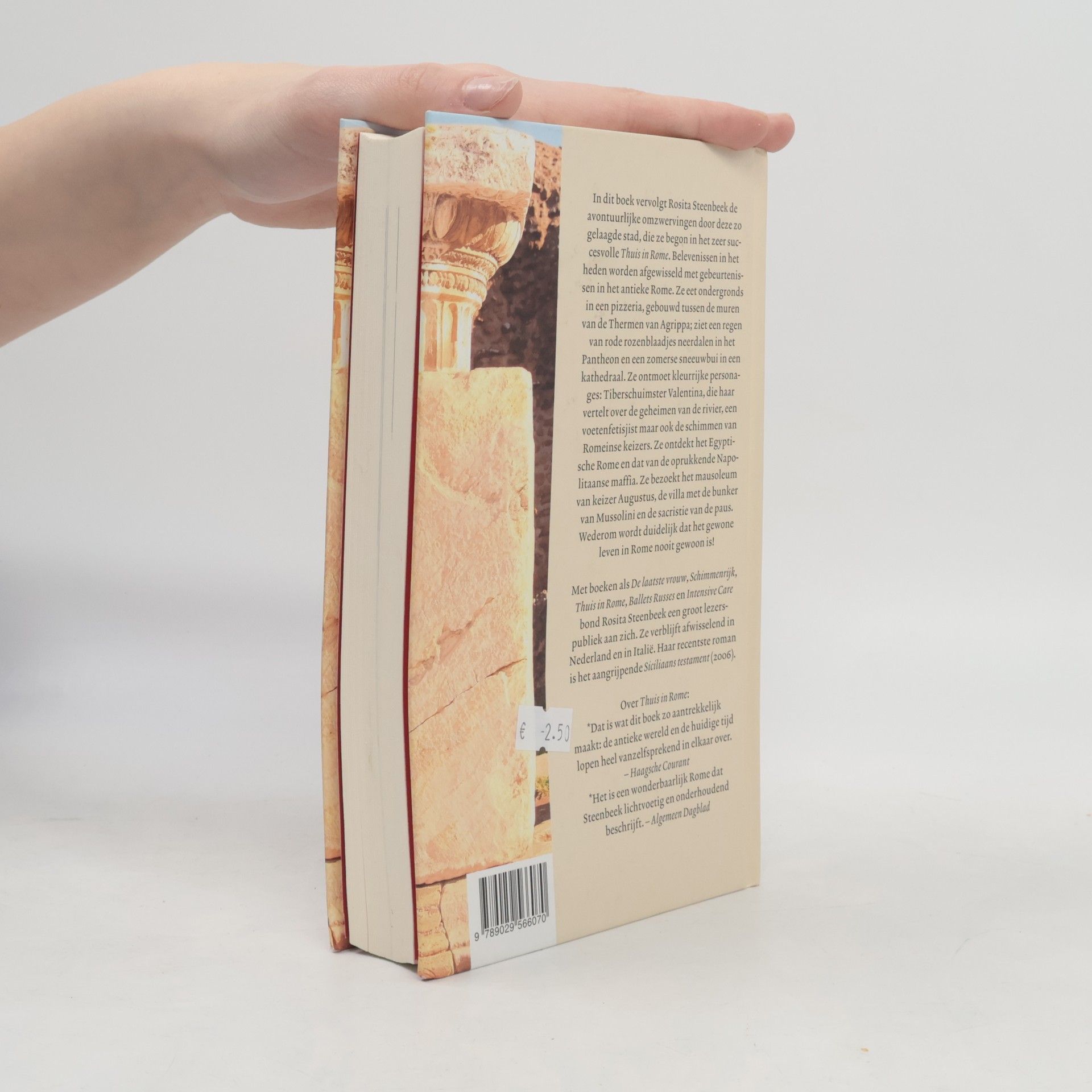 In dit boek vervolgt Rosita Steenbeek de avontuurlijke omzwervingen door deze zo gelaagde stad, die ze begon in het zeer succesvolle Thuis in Rome . Belevenissen in het heden worden afgewisseld met gebeurtenissen in het antieke Rome. Ze eet ondergronds in een pizzeria, gebouwd tussen de muren van de Thermen van Agrippa; ziet een regen van rode rozenblaadjes neerdalen in het Pantheon en een zomerse sneeuwbui in een kathedraal. Ze ontmoet kleurrijke Tiberschuimster Valentina, die haar vertelt over de geheimen van de rivier, een voetenfetisjist maar ook de schimmen van Romeinse keizers. Ze ontdekt het Egyptische Rome en dat van de oprukkende Napolitaanse maffia. Ze bezoekt het mausoleum van keizer Augustus, de villa met de bunker van Mussolini en de sacristie van de paus.Wederom wordt duidelijk dat het gewone leven in Rome nooit gewoon is!