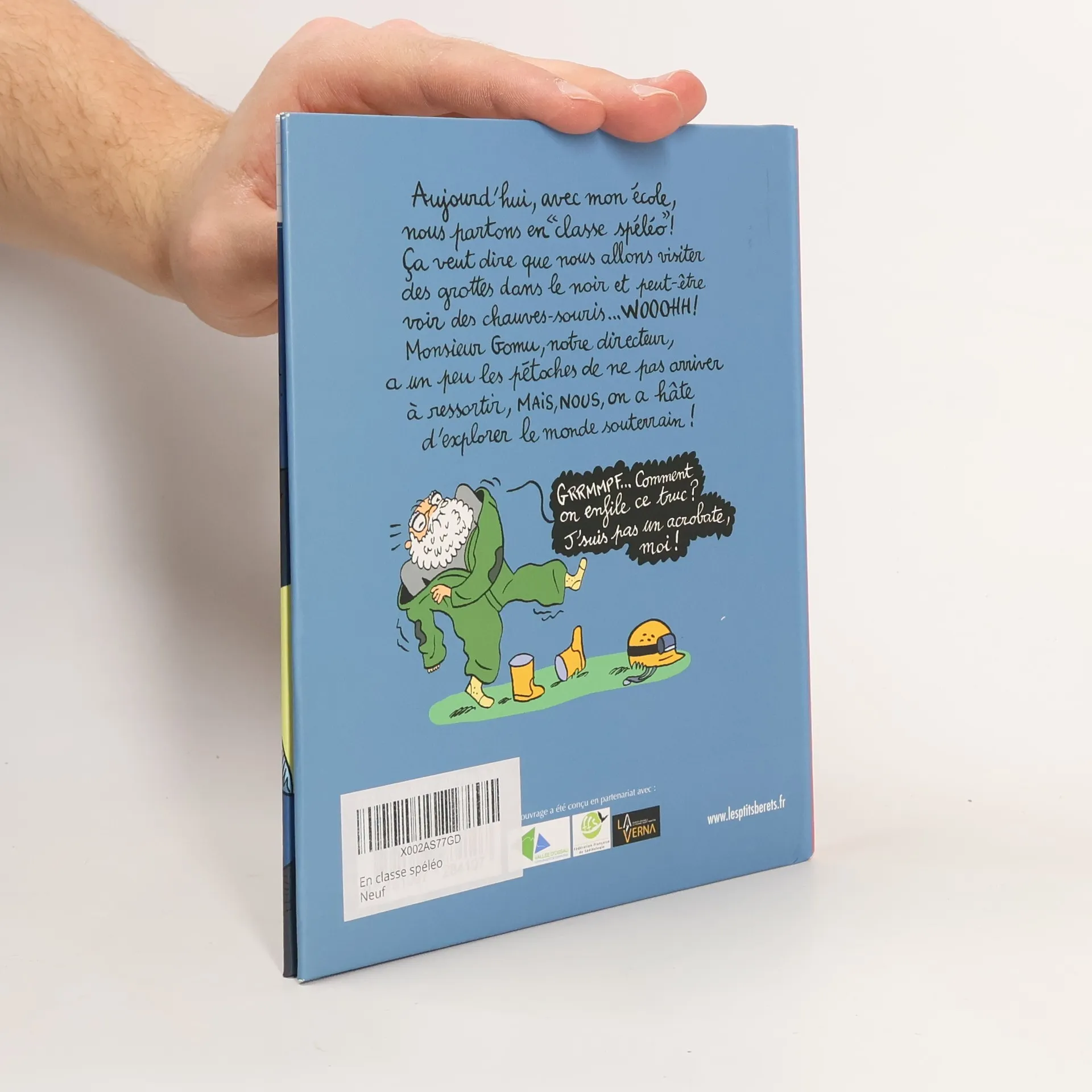 Aujourd'hui, avec mon école, nous partons en "classe spéléo"! Ca veut dire que nous allons visiter des grottes dans le noir et peut-être voir des chauves-souris... Wooohh ! Monsieur Gomu, notre directeur, a un peu les pétoches de ne pas arriver à ressortir, mais, nous on a hâte d'explorer le monde souterrain !