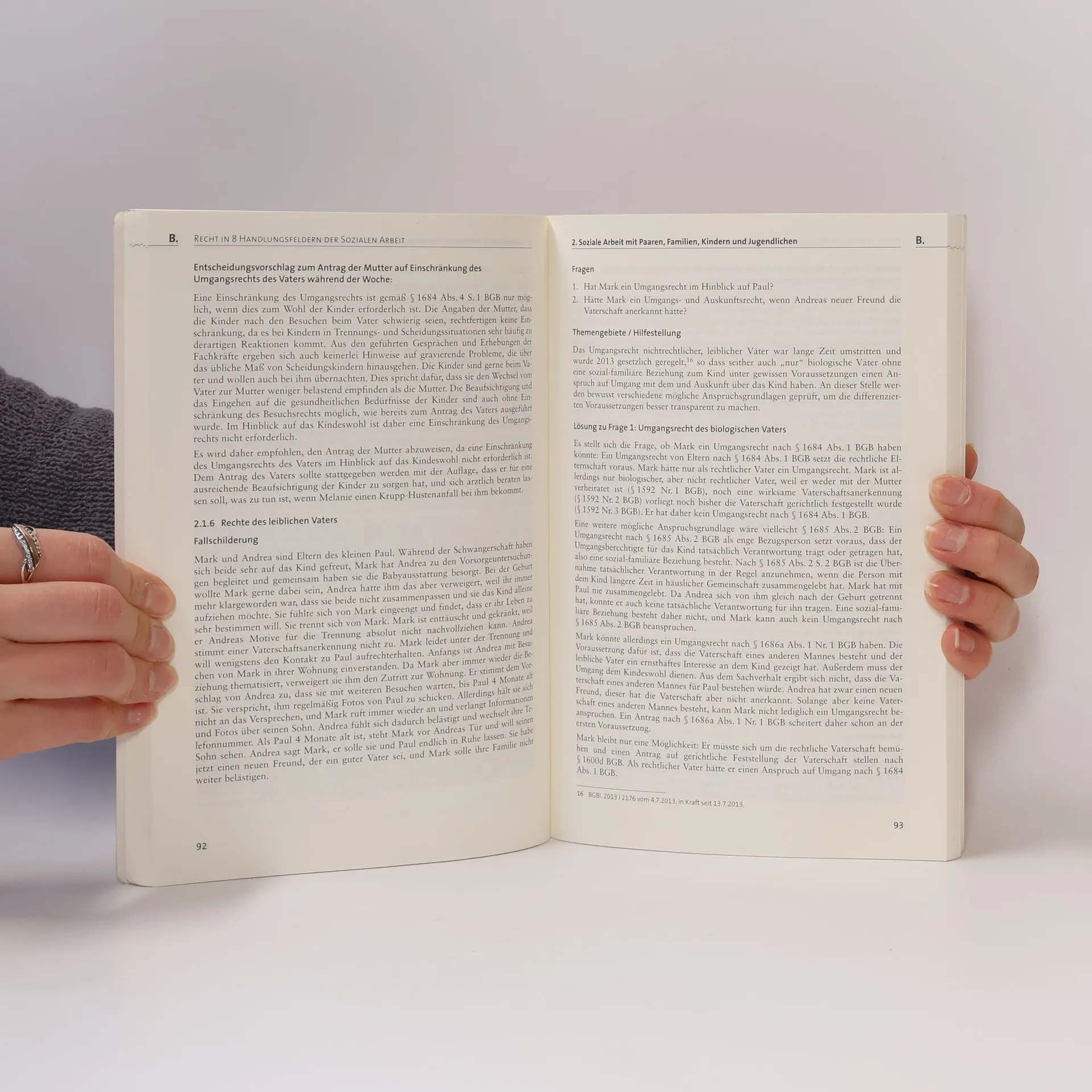 Die „Fallsammlung und Arbeitshilfen für Soziale Arbeit und Recht“ sind die sinnvolle Ergänzung zum Lehrbuch „Soziale Arbeit und Recht“. Sämtliche Kapitel zu den 8 Handlungsfeldern der Sozialen Arbeit bzw. zu den Rechtsgrundlagen der Sozialen Arbeit enthalten mindestens je drei weitere Fälle mit Lösungen, insgesamt mehr als 40 Fälle, die als sozialpädagogische Stellungnahme oder auch „rein juristisch“ ausgearbeitet sind. Arbeitshilfen, u. a. Tabellen zur Berechnung des Bedarfs in der Grundsicherung oder Links zu Formularen und weiterführenden Informationen, machen das Werk auch für Praktiker unentbehrlich. Für das Studium wurden zudem Musterklausuren mit Lösungsvorschlägen aufgenommen. Wie das Lehrbuch so beinhalten auch die „Fallsammlung und Arbeitshilfen“ ein ausführliches Literaturverzeichnis und ein aufeinander abgestimmtes Stichwortverzeichnis.
