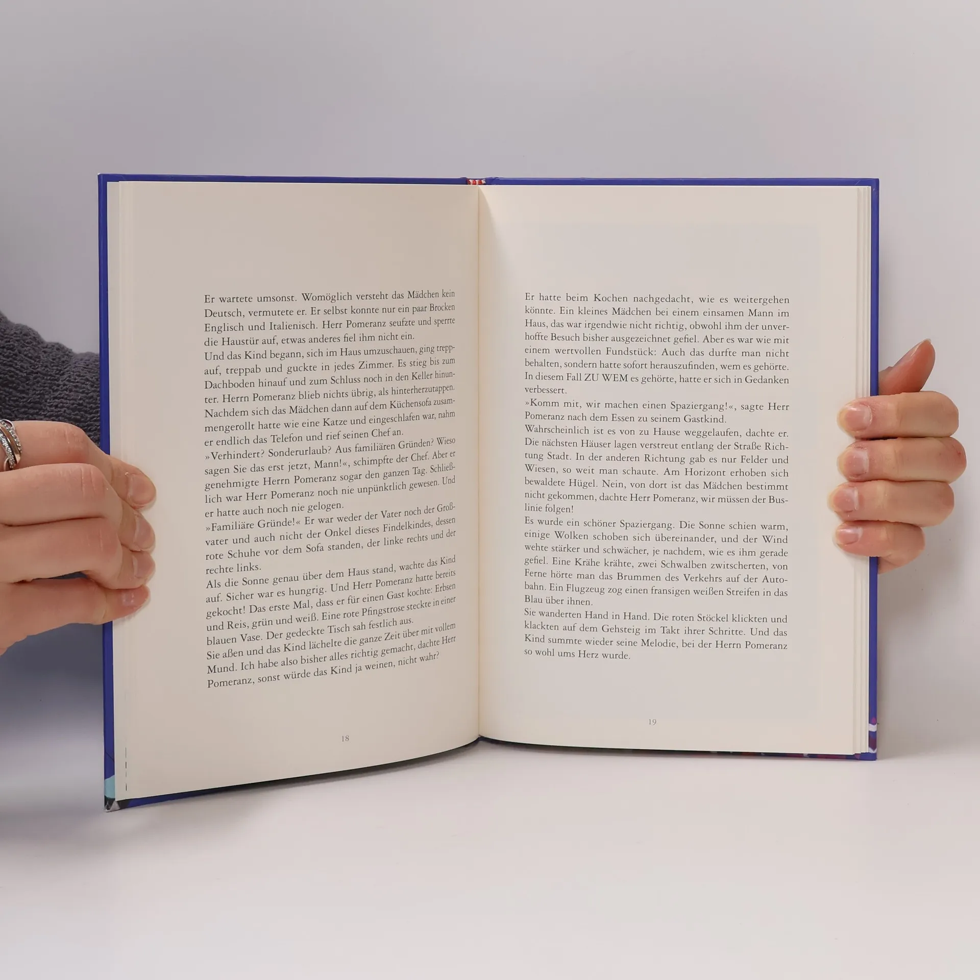 Herr Pomeranz war ein unauffälliger Mann, der in einem Haus außerhalb der Stadt lebte. Er war weder groß noch klein, dünn noch dick, alt oder jung und hatte keine besonderen Merkmale. Täglich fuhr er mit dem Bus, der an seinem Gartentor endete, und war der einzige Fahrgast, der dort ein- und ausstieg. Morgens begrüßte er den Buslenker mit einem schlichten „Guten Morgen!“ und abends mit einem „Guten Abend!“, jedoch nur an Werktagen. Seit vielen Jahren arbeitete er gewissenhaft in einem Lagerhaus, wo er Buch über alle Ein- und Ausgänge führte. Früher schrieb er mit Stiften auf Papier, heute nutzt er einen Computer, was seine Arbeit effizienter machte. Sein Chef war mit seiner Genauigkeit sehr zufrieden, bis auf eine Kleinigkeit, die den Ausgang der Geschichte prägen sollte: Herr Pomeranz lachte nie. Eines Morgens, als er sein Haus verließ, trug er eine Aktentasche, die keine Dokumente, sondern nur seine Sonnenbrille, einen Knirps und seine Jause – einen Apfel für den Vormittag und eine Birne für den Nachmittag – enthielt. Diese alltäglichen Details bilden den Auftakt zu einer unerwarteten Wendung in seinem Leben.