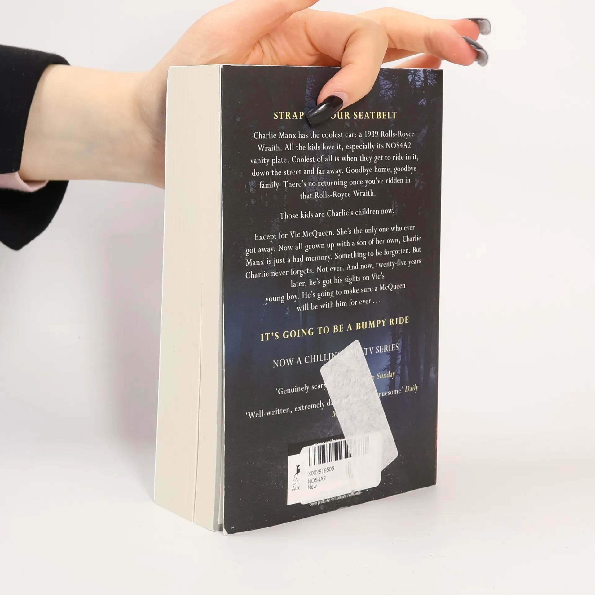 Summer. Massachusetts. An old Silver Wraith with a frightening history. A story about one serial killer and his lingering, unfinished business. Anyone could be next. We're going to Christmasland ... NOS4R2 is an old-fashioned horror novel in the best sense. Claustrophobic, gripping and terrifying, this is a story that will have you on the edge of the seat while you read, and leaving the lights on while you sleep. With the horrific tale of Charles Manx and his Silver Wraith, Joe Hill has established himself as the premiere horror and supernatural thriller writer of his generation.