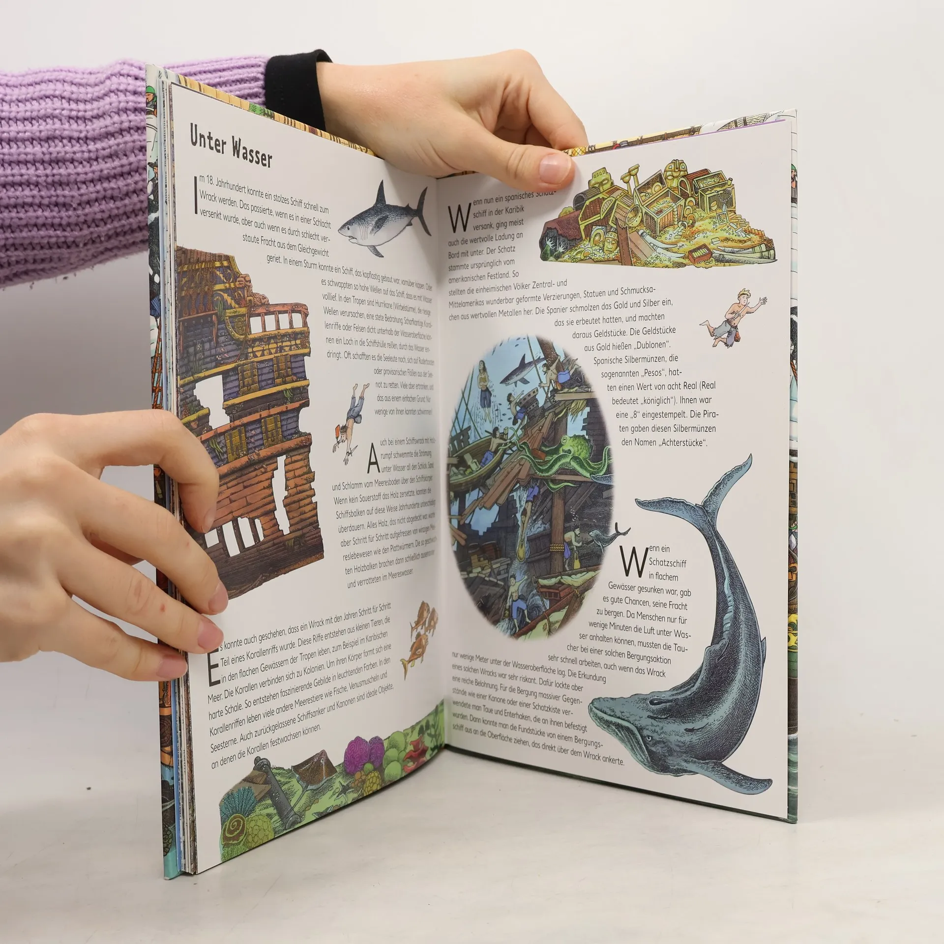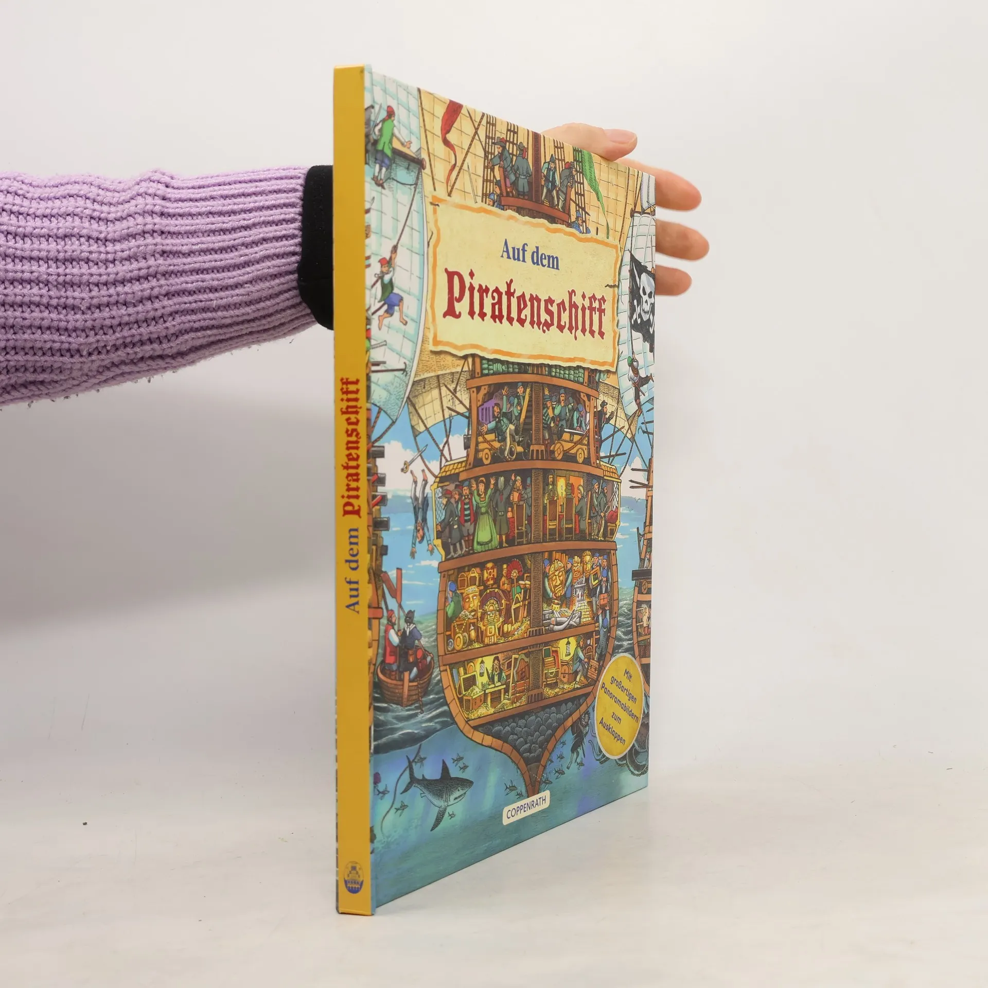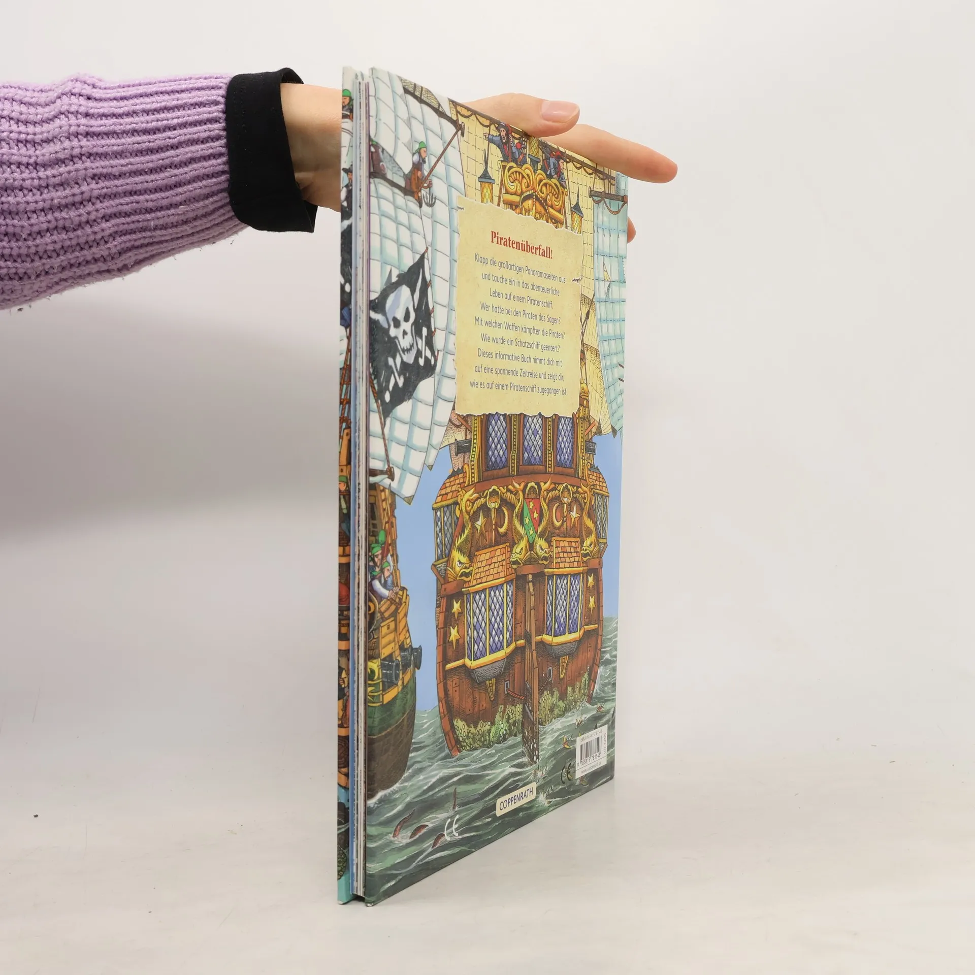 Piratenüberfall! Dieses informative Buch nimmt neugierige Kinder mit auf eine spannende Zeitreise und zeigt ihnen, wie es auf einem Piratenschiff zugegangen ist. Klappt man die großartigen Panoramaseiten auf, taucht man regelrecht ein in das abenteuerliche Leben auf dem Schiff: Wer hatte bei den Piraten das Sagen? Mit welchen Waffen kämpften die Piraten? Oder wie wurde ein Schatzschiff geentert?