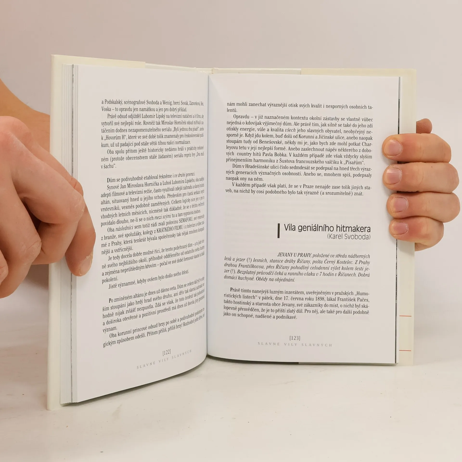 Den co den míjíme bez zvláštního povšimnutí nekonečné množství budov, domů a staveb vůbec. Přesto jsou však mezi nimi mnohé, které si naši pozornosti naopak víc než zaslouží. Zejména proto, že se do jejich stěn a zdí provždy otiskly síly ducha, osudu a charakterů jejich svým způsobem velkých obyvatel. Slavné vily slavných je kniha, která svého čtenáře neinformuje jen o uměnovědných či architektonických detailech pražských, respektive českých rodinných domů, chcete-li vil, nýbrž především o jejich osudech ve srozumitelném kontextu například s životními příběhy Martina Friče, Jana Wericha, Dr. Jaroslava Preisse, bratří Čapků, Vlasty Buriana, Miloše Havla, Lídy Baarové, Karla Svobody, Edvarda Beneše, Karla Gotta - plus dalších nejméně patnácti velkých českých osobností, dodnes právem hodných naší pozornosti. Slavné vily slavných, vypravené společně s cenným dobovým, ale i současným původním fotografickým materiálem, jsou možná svérázným a u nás zatím neobvyklým, nicméně jednoznačně cenným příspěvkem do všeobecně žádané nabídky české memoárové literatury. Anebo, chcete-li, literatury faktu.