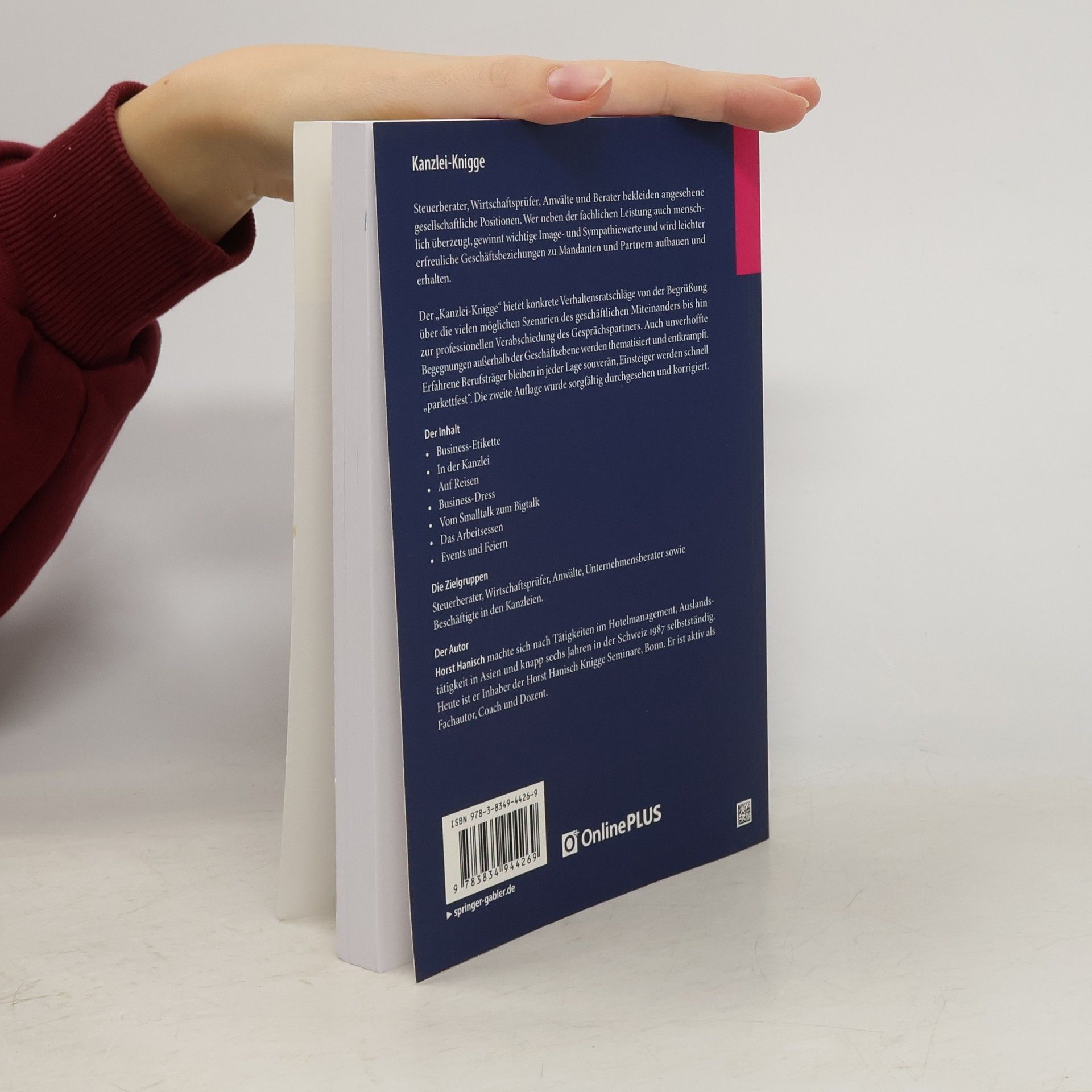 Steuerberater, Wirtschaftsprüfer, Anwälte und Berater bekleiden angesehene gesellschaftliche Positionen. Wer neben der fachlichen Leistung auch menschlich überzeugt, gewinnt wichtige Image- und Sympathiewerte und wird leichter erfreuliche Geschäftsbeziehungen zu Mandanten und Partnern aufbauen und erhalten. Der „Kanzlei-Knigge“ bietet konkrete Verhaltensratschläge von der Begrüßung über die vielen möglichen Szenarien des geschäftlichen Miteinanders bis hin zur professionellen Verabschiedung des Geschäftspartners. Auch unverhoffte Begegnungen außerhalb der Geschäftsebene werden thematisiert und entkrampft. Erfahrene Berufsträger bleiben in jeder Lage souverän, Einsteiger werden schnell „parkettfest“.