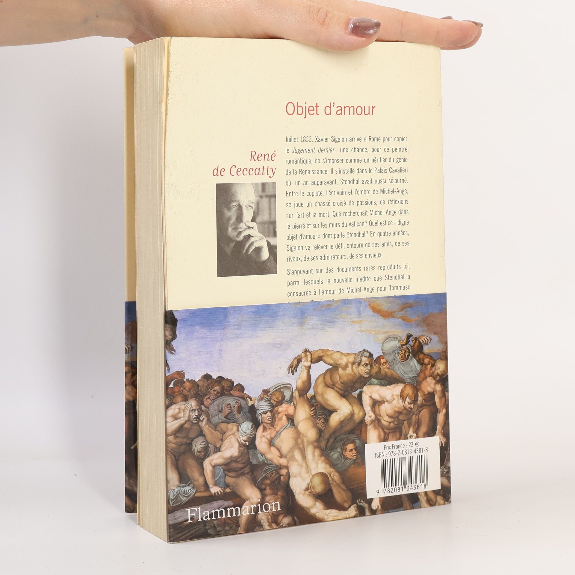 Juillet 1833. Xavier Sigalon arrive à Rome pour copier le Jugement dernier : une chance, pour ce peintre romantique, de s'imposer comme un héritier du génie de la Renaissance. Il s'installe dans le Palais Cavalieri où, un an auparavant, Stendhal avait aussi séjourné. Entre le copiste, l'écrivain et l'ombre de Michel-Ange, se joue un chassé-croisé de passions, de réflexions sur l'art et la mort. Que recherchait Michel-Ange dans la pierre et sur les murs du Vatican ? Quel est ce "digne objet d'amour" dont parle Stendhal ? En quatre années, Sigalon va relever le défi, entouré de ses amis, de ses rivaux, de ses admirateurs, de ses envieux. S'appuyant sur des documents rares reproduits ici, parmi lesquels la nouvelle inédite que Stendhal a consacrée à l'amour de Michel-Ange pour Tommaso Cavalieri, René de Ceccatty signe le roman de Sigalon, ce peintre méconnu qui fut le modèle de Joseph Bridau dans La Comédie humaine de Balzac.
