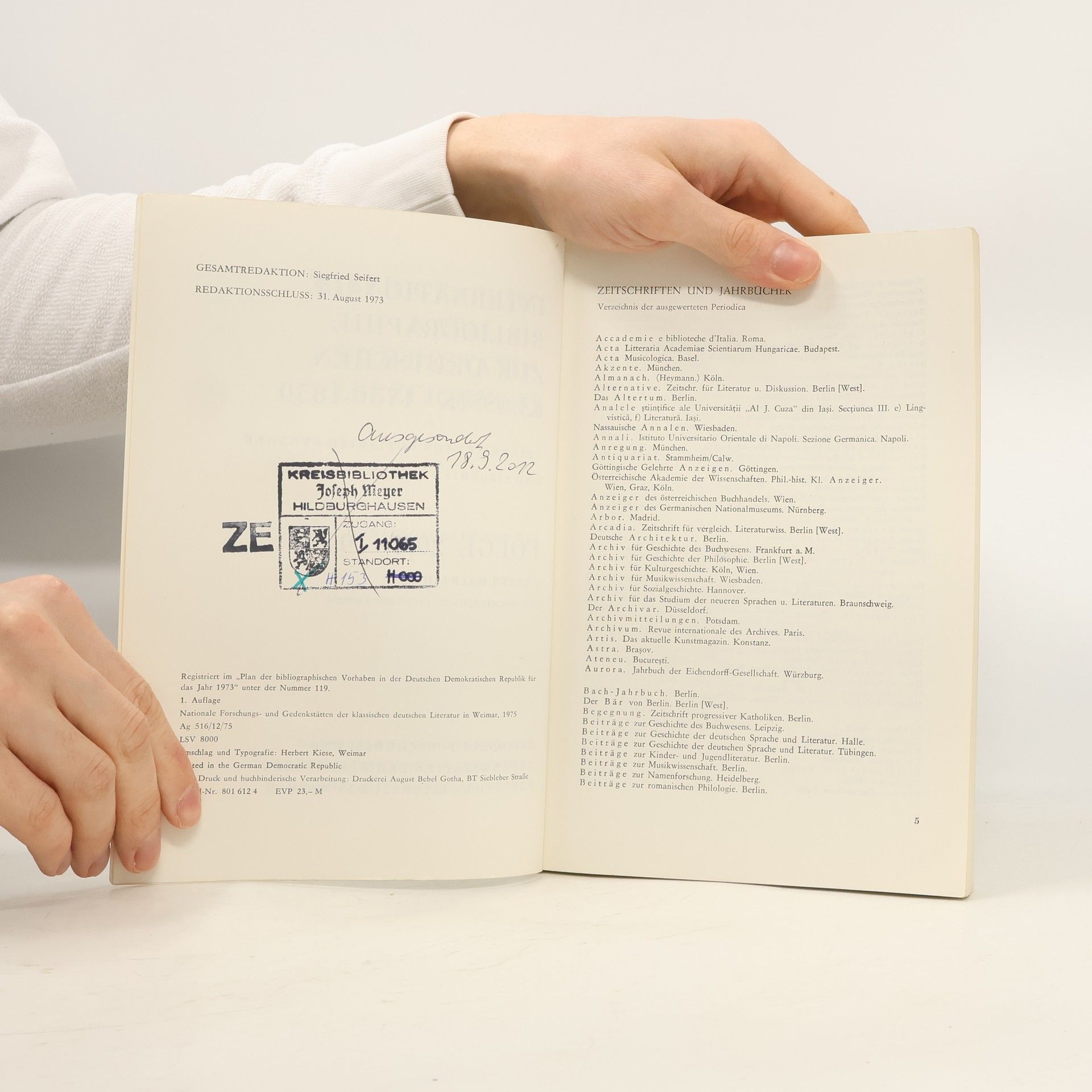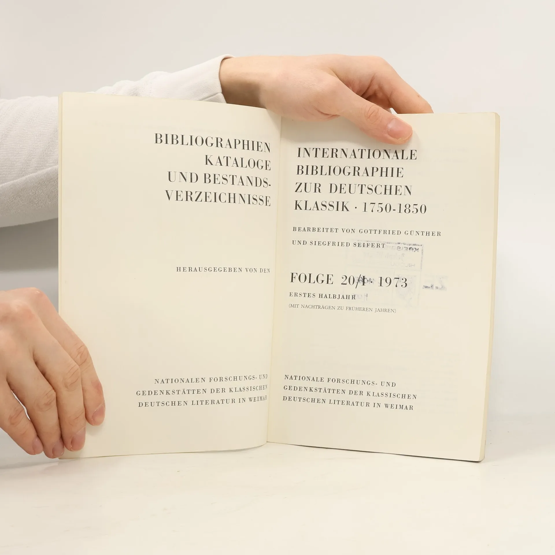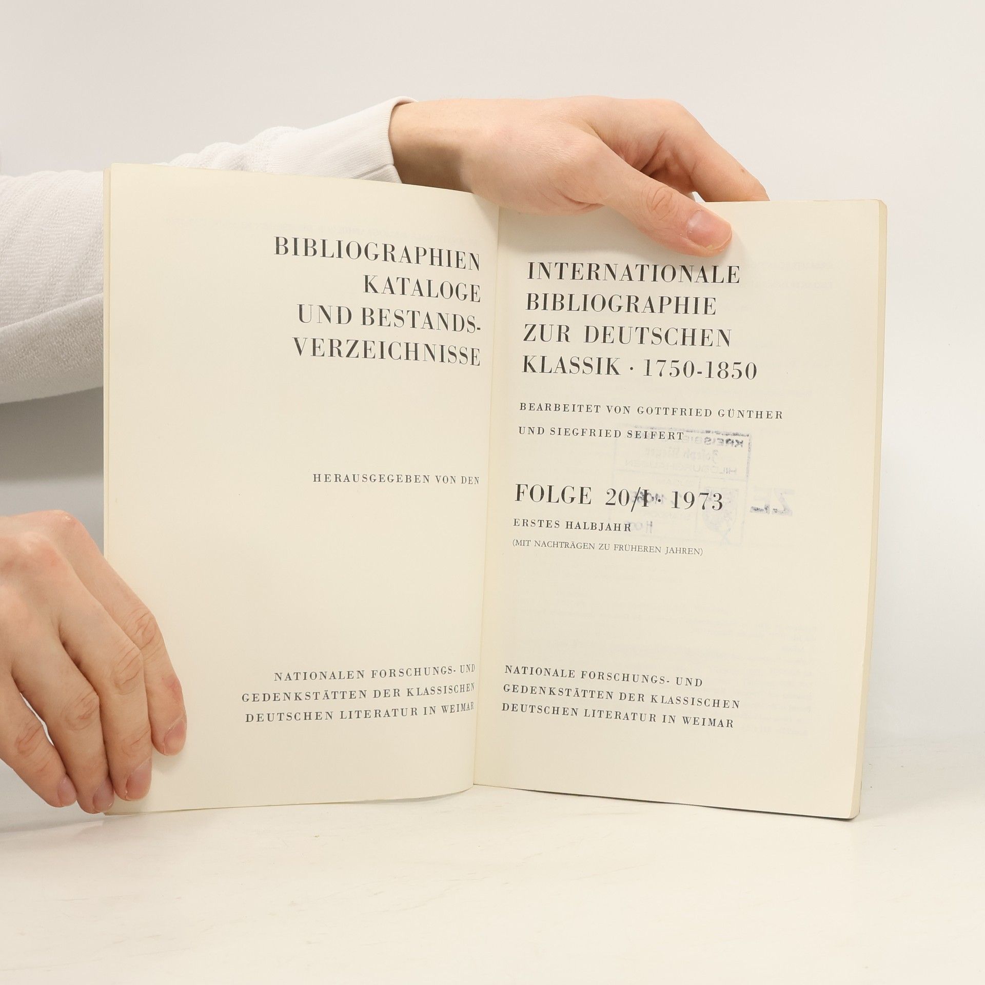 Internationale Bibliographie zur deutschen Klassik 1750-1850. Folge 20/I
