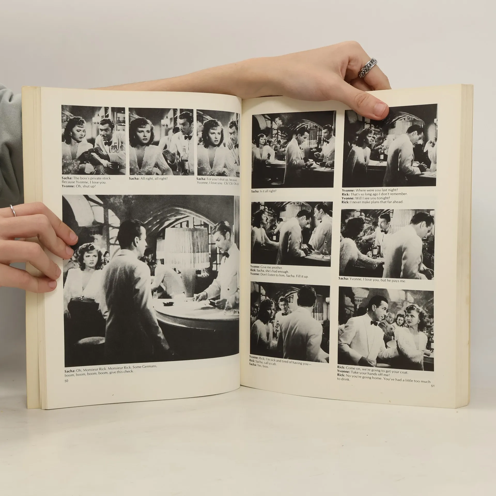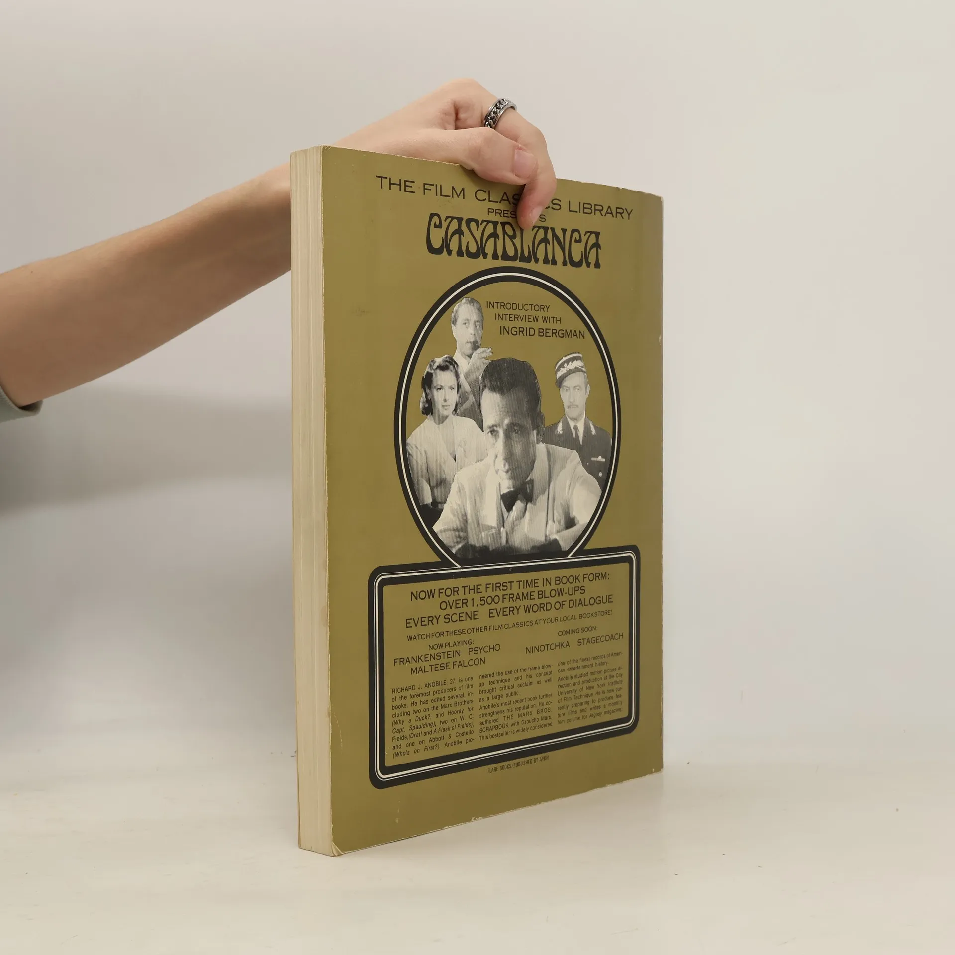 This wonderful edition Casablanca, from the Film Classic Library presents the most accurate and complete reconstruction of a film in book over 1,500 frame blow=up photos shown sequentially and coupled with the complete dialogue from the original soundtrack, allow you to recapture this film classic in its entitety..at your leisure.