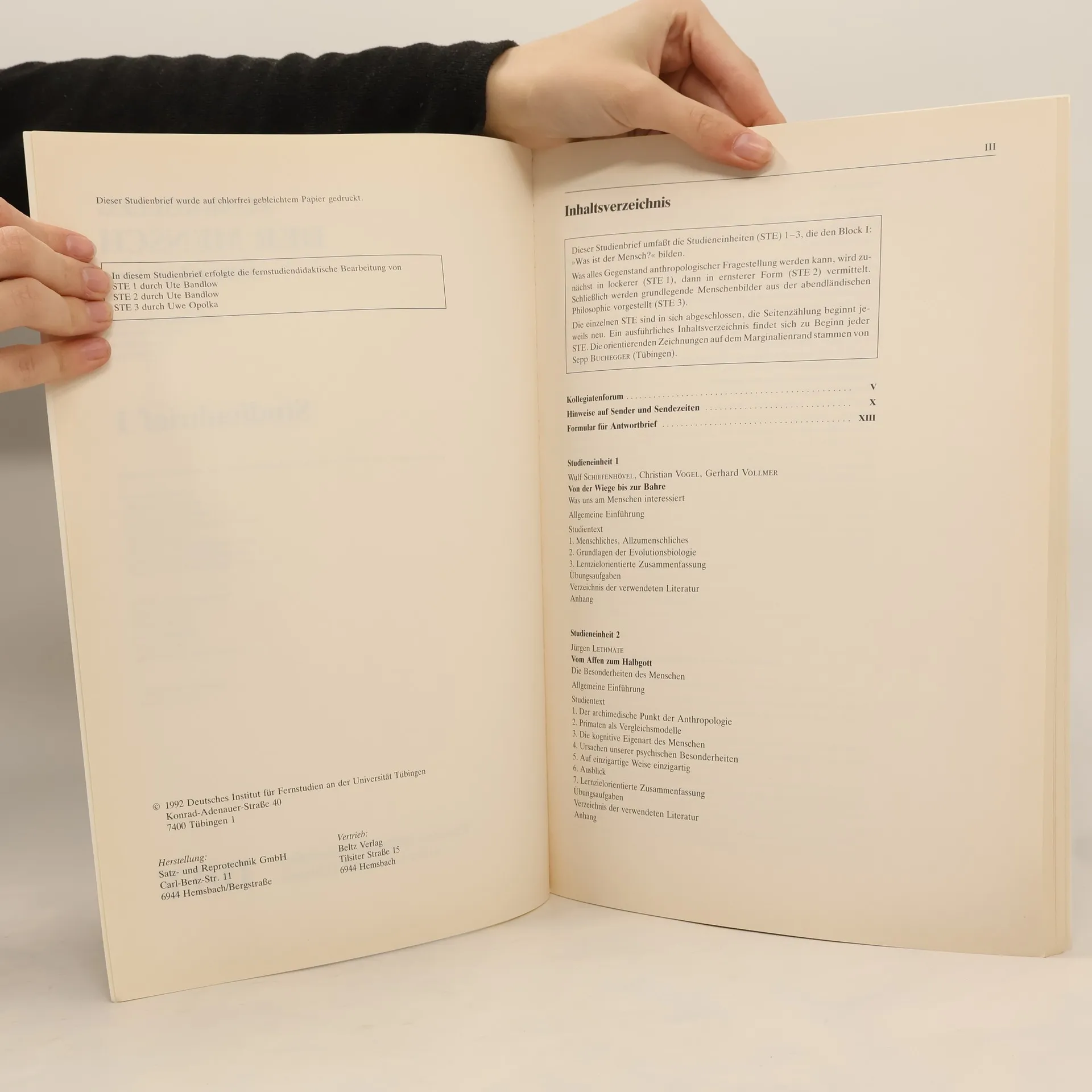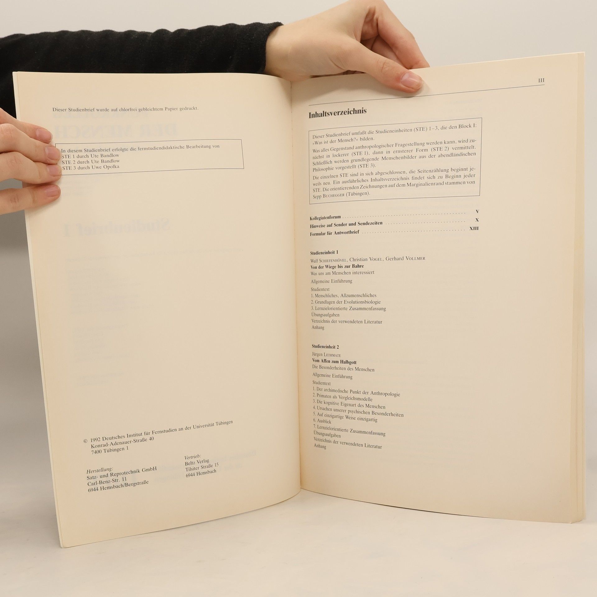 Funkkolleg. Der Mensch. Anthropologie heute. Studienbrief 1, Kolektiv autorů