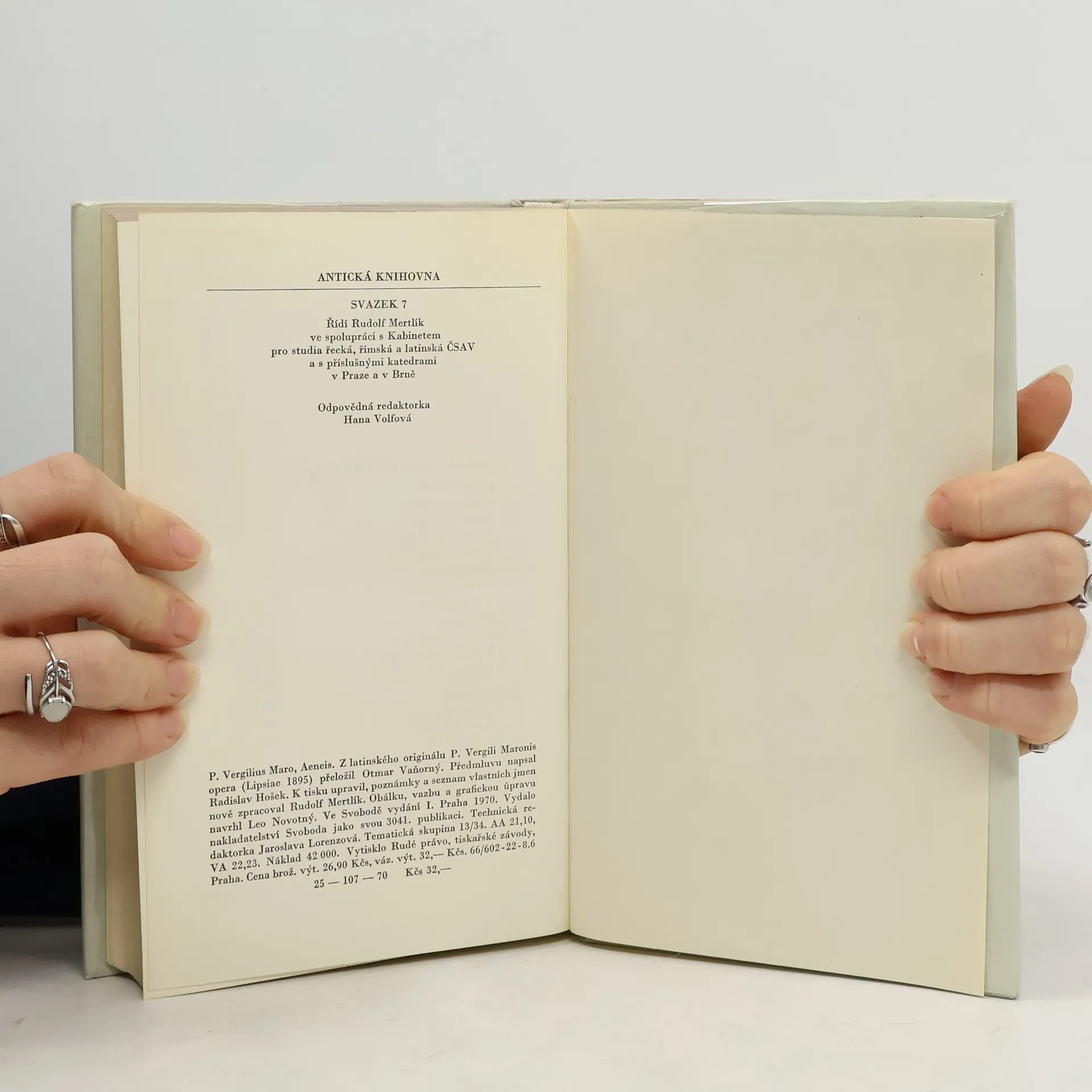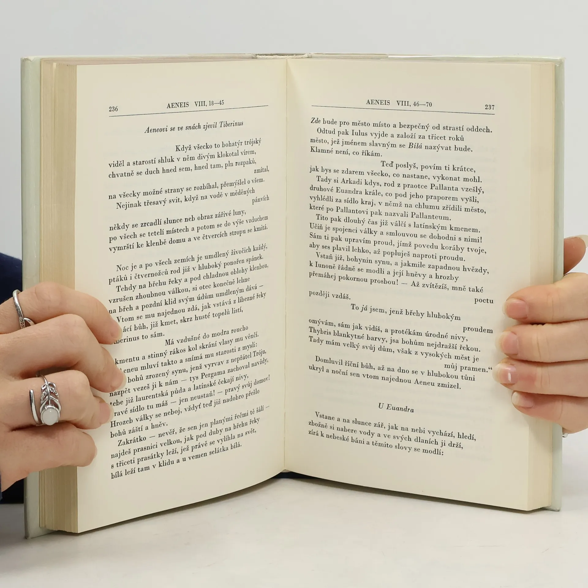 Nový překlad životního díla Publia Vergilia Marona (70– 19. př. n. l.), hrdinského eposu, který tvoří jeden z vrcholů římské literatury. Slavný básník v postavě bájného Aenea ztělesnil římský ideál osobní dokonalosti a epos líčící jeho dramatické osudy představuje základní mýtus o vzniku římského národa a říše – v proslulé podsvětní scéně je prorokována římská budoucnost a velikost až do panování císaře Augusta. Příběh navazuje na děj Homérovy Iliady: po dobytí Tróje vynesl Aeneas z hořícího města na zádech svého otce Anchísa a zachránil i svého syna Askania. Jeho posláním je založit jinde novou Tróju. Po dramatickém putování Středozemím, jehož nejznámější epizodou je tragicky ukončený milostný vztah s kartáginskou královnou Didonou, dorazí do Itálie, podstoupí těžký boj s vládcem kmene Rutulů Turnem a sňatkem s Lavinií, dcerou krále Latinů, získá vládu nad Latiem, územím, na němž později vznikne Řím. Aeneis byla bohatým zdrojem inspirace pro nespočet výtvarných, hudebních i literárních děl od antiky až téměř do současnosti. Přeložil Rudolf Mertlík na základě překladu Otmara Vaňorného; doslov napsal Martin C. Putna.