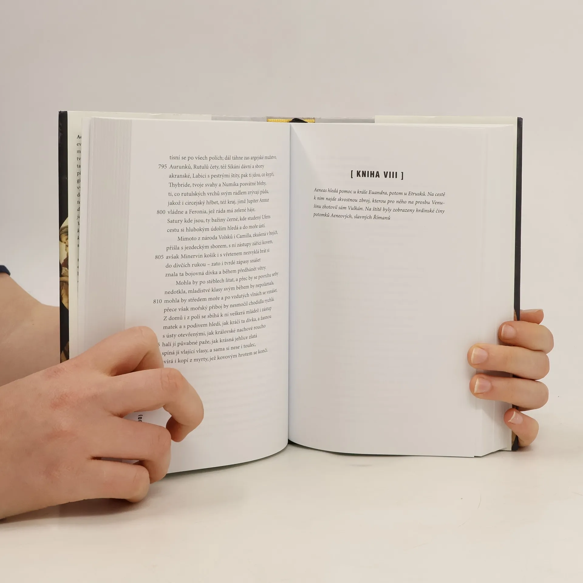 Nový překlad životního díla Publia Vergilia Marona (70– 19. př. n. l.), hrdinského eposu, který tvoří jeden z vrcholů římské literatury. Slavný básník v postavě bájného Aenea ztělesnil římský ideál osobní dokonalosti a epos líčící jeho dramatické osudy představuje základní mýtus o vzniku římského národa a říše – v proslulé podsvětní scéně je prorokována římská budoucnost a velikost až do panování císaře Augusta. Příběh navazuje na děj Homérovy Iliady: po dobytí Tróje vynesl Aeneas z hořícího města na zádech svého otce Anchísa a zachránil i svého syna Askania. Jeho posláním je založit jinde novou Tróju. Po dramatickém putování Středozemím, jehož nejznámější epizodou je tragicky ukončený milostný vztah s kartáginskou královnou Didonou, dorazí do Itálie, podstoupí těžký boj s vládcem kmene Rutulů Turnem a sňatkem s Lavinií, dcerou krále Latinů, získá vládu nad Latiem, územím, na němž později vznikne Řím. Aeneis byla bohatým zdrojem inspirace pro nespočet výtvarných, hudebních i literárních děl od antiky až téměř do současnosti. Přeložil Rudolf Mertlík na základě překladu Otmara Vaňorného; doslov napsal Martin C. Putna.