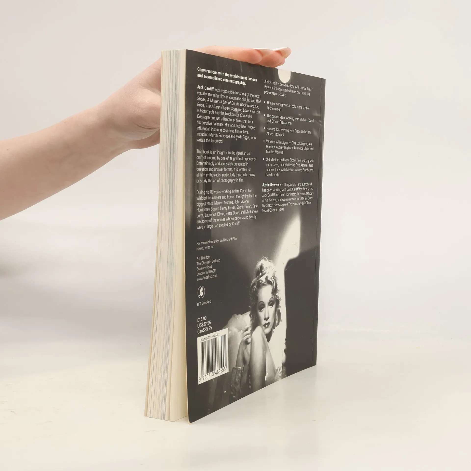 Jack Cardiff was responsible for some of the most visually stunning fims in cinematic history. Tile Red Shoes, A Matter of Life of Death, Black Narcissus, Rope, The African Queen, Sons and Lovers, Girl on a Motorcycle and the blockbuster Conan the Destroyer are just a handfulof films that bear his creative hallmark. His work has been hugely influential, inspiring countl ess filmmakers, including Martin Scorsese and Mike Figgi s, who writes the foreword. This book i s an insight into the visual art and craft of cinema by one of its greatest exponents. Entertainingly and accessibly presented in question and answer format, it is written for all film enthusiasts. particularly those who enjoy or study the art of photography in film.