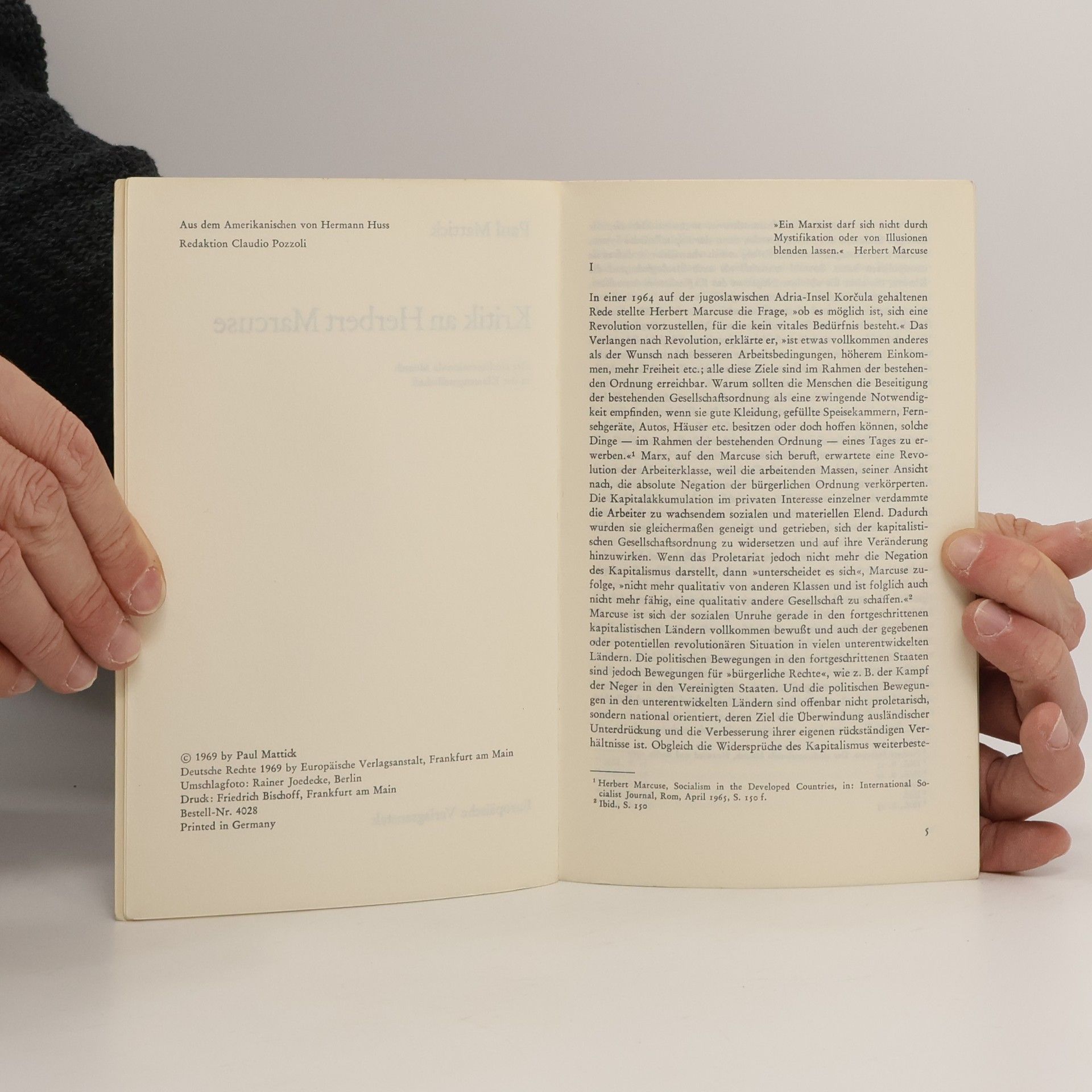 Kritik an Herbert Marcuse, Paul Mattick