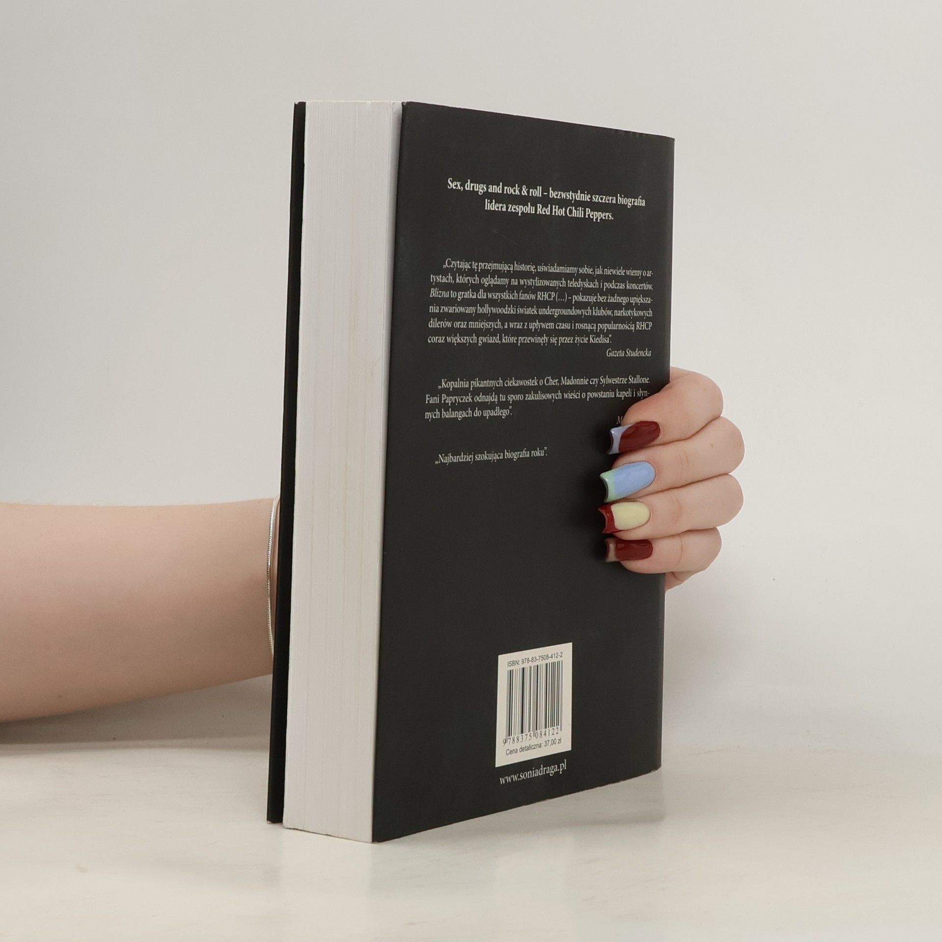 Młodzieńcze lata Anthony’ego Kiedisa, lidera jednego z najpopularniejszych zespołów rockowych na świecie, to doskonały... materiał na książkę. Bez zbędnego koloryzowania, bez taniego ubarwiania rzeczywistości, za to z odpowiednią dozą szczerości powstała biografia człowieka, którego muzyka i ogromna pasja zaprowadziły na szczyty sławy. Blizna to wspomnienie szalonych młodzieńczych lat wypełnionych muzyką, seksem, narkotykami i imprezami. To opowieść o pogoni za silnymi wrażeniami, o życiu na krawędzi i o poszukiwaniu upustu dla posiadanych zasobów energii. To wreszcie historia o tym jak zwykły, urodzony w Grand Rapids w stanie Michigan chłopak przeniósł się do Hollywood i na końcu tęczy znalazł więcej, niż mógł udźwignąć. Dogłębnie szczera spowiedź jednej z najbardziej wyrazistych ikon współczesnej sceny rockowej.