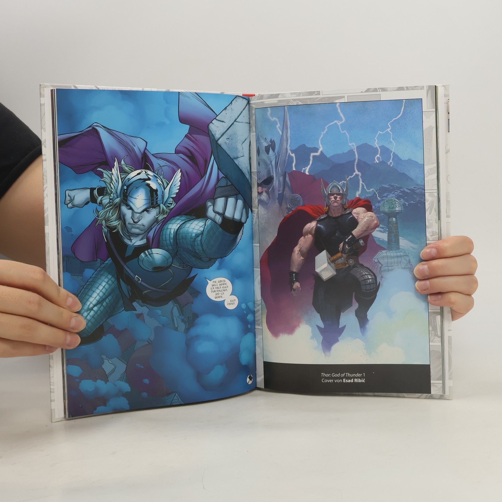 THOR DER DONNERGOTT Von seinem Vater Odin nach Midgard entsandt, erhält der junge und arrogante Thor nicht nur eine Lektion in Sachen Bescheidenheit, sondern lernt auch die Erde und ihre Bewohner zu lieben. Ein Gott auf Erden, der sein Leben dem Schutz der Sterblichen widmet. Und all das, ohne Asgard zu vergessen, die Stadt der Götter und seine Heimat. Verteidiger der Menschheit, Krieger aus Asgard und Gründungsmitglied der Avengers – Thor ist eine der tragenden Säulen des Marvel-Universums und seine Comic-Abenteuer verzauberten das Publikum jahrzehntelang, bevor er auch zum Gott des Kinos und einer der bekanntesten Figuren des neuen Millenniums wurde. Seit jeher kämpft der Sohn des Odin gegen fürchterliche Bedrohungen, so auch in den wegweisenden Geschichten in diesem einsteigerfreundlichen Band.