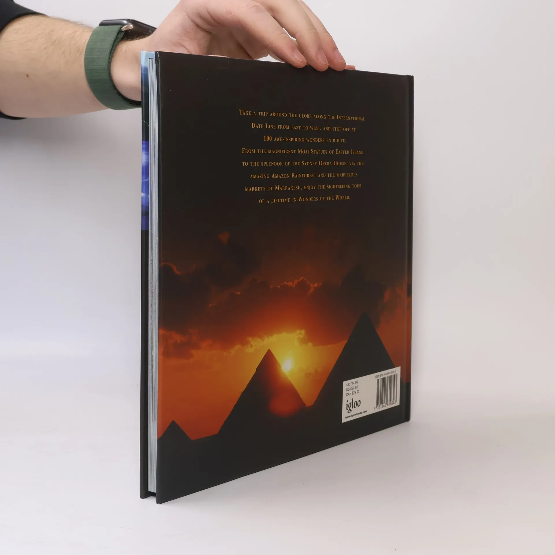 Take a trip around the globe along the international date line from east to west, and stop off at 100 awe-inspiring wonders en-route. From the magnificent Moai statues of Easter Island to the splendor of the Sydney Opera House, via the amazing Amazon rain forest and the marvelous markets of Marrakesh, enjoy the sightseeing tour of a lifetime of wonders of the world.