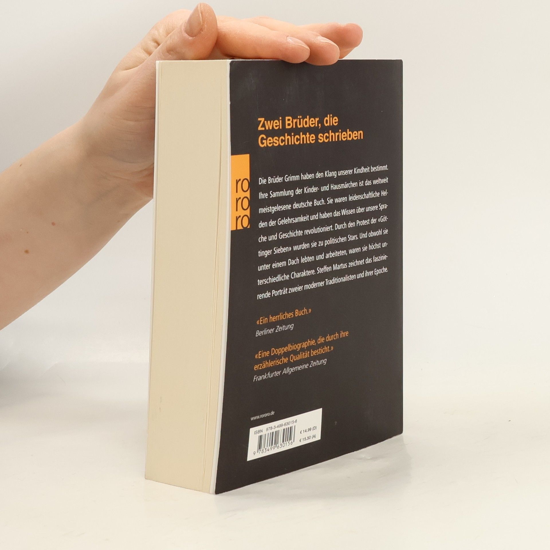 Zwei Brüder, die Geschichte schrieben Die Brüder Grimm haben den Klang unserer Kindheit bestimmt. Ihre Sammlung der Kinder- und Hausmärchen ist das weltweit meistgelesene deutsche Buch. Sie waren leidenschaftliche Helden der Gelehrsamkeit und haben das Wissen über unsere Sprache und Geschichte revolutioniert. Durch den Protest der «Göttinger Sieben» wurden sie zu politischen Stars. Und obwohl sie unter einem Dach lebten und arbeiteten, waren sie höchst unterschiedliche Charaktere. Steffen Martus zeichnet das faszinierende Porträt zweier moderner Traditionalisten und ihrer Epoche. «Ein herrliches Buch.» Berliner Zeitung «Eine Doppelbiographie, die durch ihre erzählerische Qualität besticht.» Frankfurter Allgemeine Zeitung
