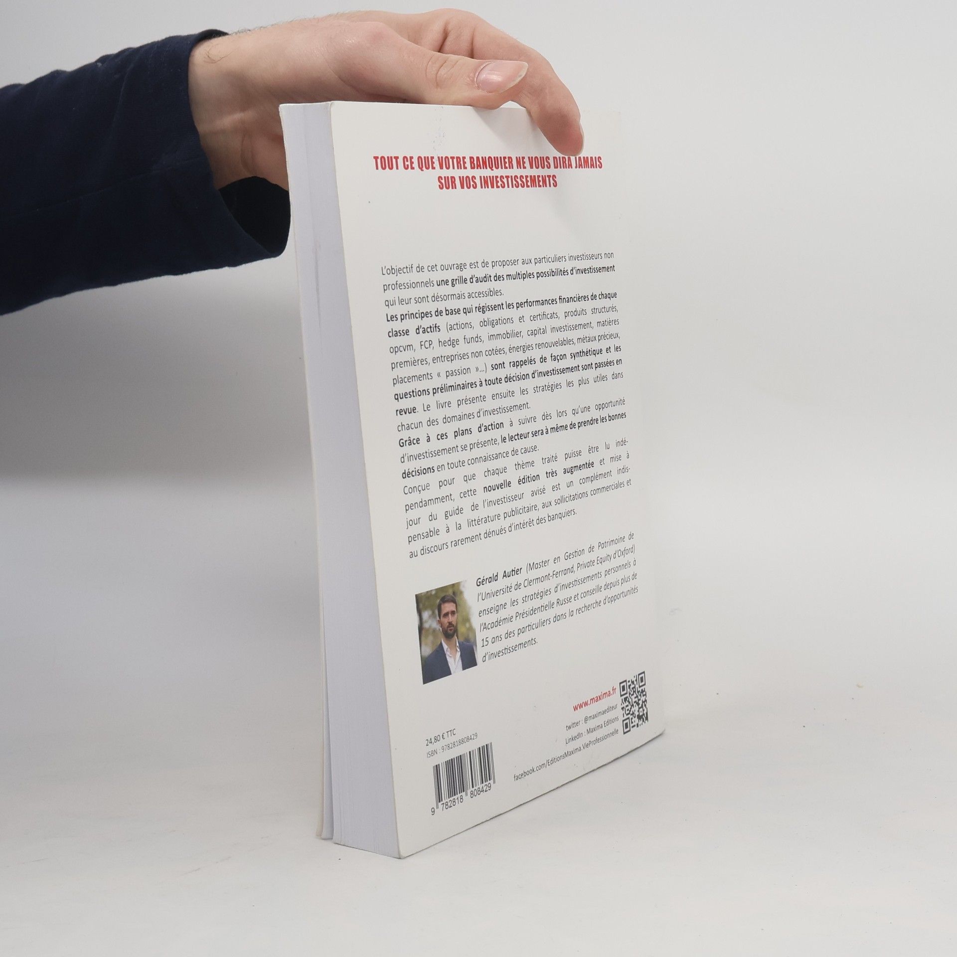 L'objectif de cet ouvrage est de proposer aux particuliers investisseurs non professionnels une grille d'audit des multiples possibilités d'investissement qui leur sont désormais accessibles. Les principes de base qui régissent les performances financières de chaque classe d'actifs (actions, obligations et certificats, produits structurés, opcvm, FCP, hedge funds, immobilier, capital investissement, matières premières, entreprises non cotées, énergies renouvelables, métaux précieux, placements " passion "...) sont rappelés de façon synthétique et les questions préliminaires à toute décision d'investissement sont passées en revue. Le livre présente ensuite les stratégies les plus utiles dans chacun des domaines d'investissement. Grâce à ces plans d'action à suivre dès lors qu'une opportunité d'investissement se présente, le lecteur sera à même de prendre les bonnes décisions en toute connaissance de cause. Conçu pour que chaque thème traité puisse être lu indépendamment, ce cette nouvelle édition très augmentée et mise à jour du guide de l'investisseur avisé est un complément indispensable à la littérature publicitaire, aux sollicitations commerciales et au discours rarement dénués d'intérêt des banquiers.