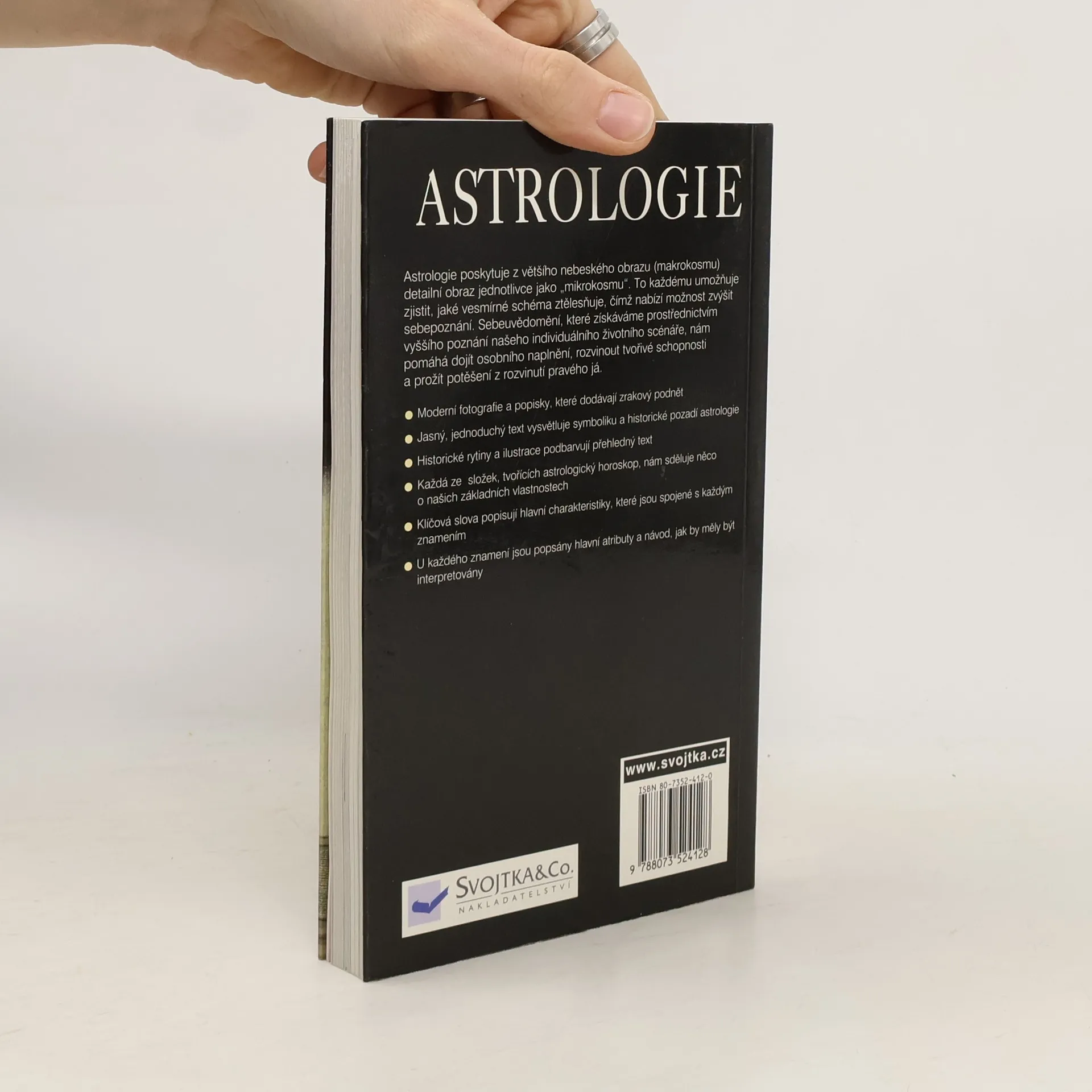 Moderní fotografie a popisky, které dodávají zrakový podnět. Jasný, jednoduchý text vysvětluje symboliku a historické pozadí astrologie. Historické rytiny a ilustrace podbarvují přehledný text. Každá ze složek, tvořících astrologický hosroskop, nám sděluje něco o našich základních vlastnostech. Klíčová slova popisují hlavní charakteristiky, které jsou spojené s každým znamením. U každého znamení jsou popsány hlavní atributy a návod, jak by měly být interpretovány.