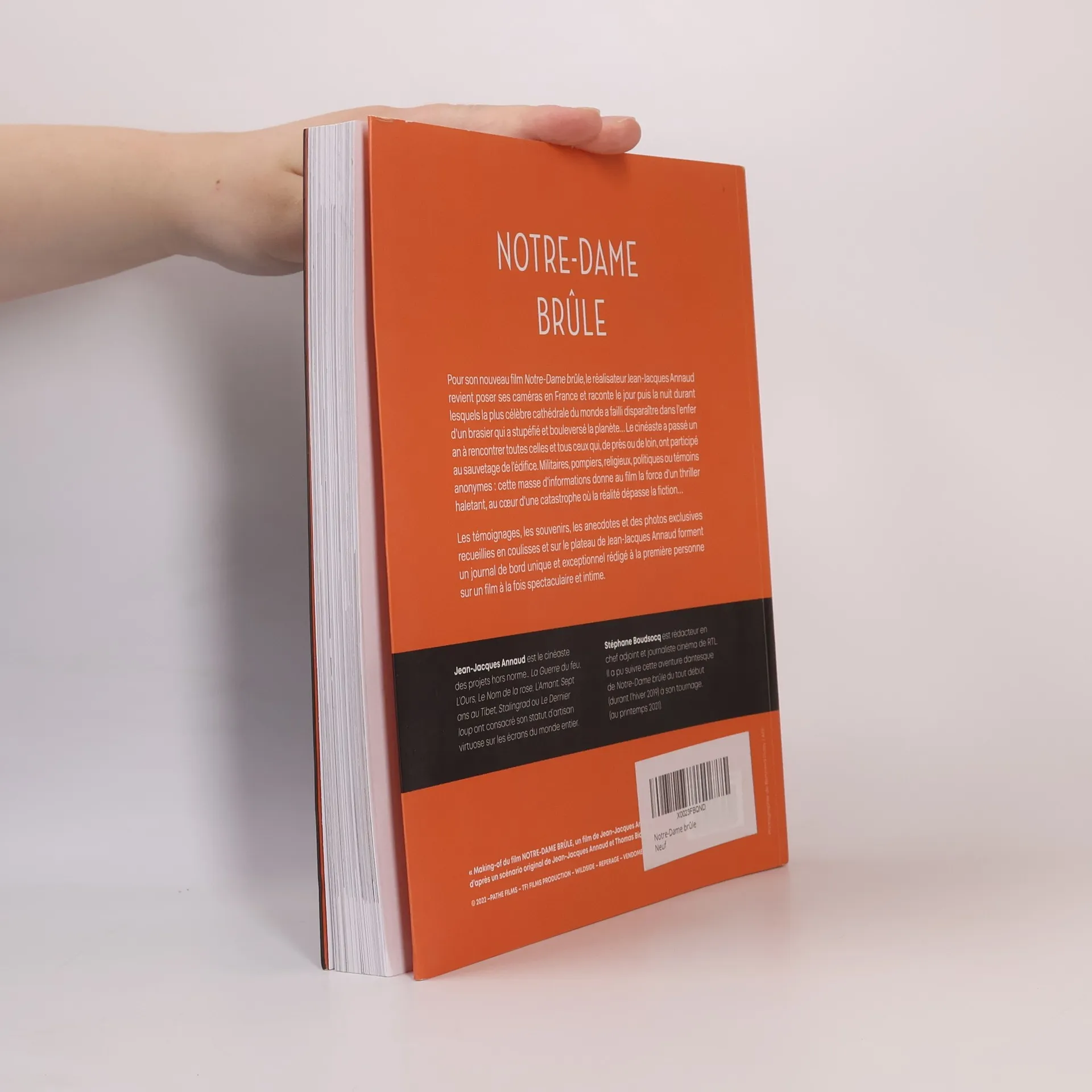 Le livre du tournage du film événement "Notre-Dame brûle". Jean-Jacques Annaud est le cinéaste des projets hors norme... La Guerre du feu, L'Ours, Le Nom de la rose, L'Amant, Sept ans au Tibet, Stalingrad ou Le Dernier loup ont consacré son statut d'artisan virtuose sur les écrans du monde entier.Pour son nouveau film Notre-Dame brûle , le réalisateur revient poser ses caméras en France et raconte le jour puis la nuit durant lesquels la plus célèbre cathédrale du monde a failli disparaître dans l'enfer d'un brasier qui a stupéfié et bouleversé la planète... Le cinéaste a passé un an à rencontrer toutes celles et tous ceux qui, de près ou de loin, ont participé au sauvetage de l'édifice. Militaires, pompiers, religieux, politiques ou témoins anonymes : cette masse d'informations donne au film la force d'un thriller haletant, au cœur d'une catastrophe où la réalité dépasse la fiction...Stéphane Boudsocq, journaliste cinéma de RTL, a pu suivre cette aventure dantesque du tout début, (durant l'hiver 2019), à son tournage, (au printemps 2021).Les témoignages, le sentiment, les souvenirs et les anecdotes recueillies en coulisses et sur le plateau de Jean-Jacques Annaud forment un journal de bord unique et exceptionnel rédigé à la première personne sur l'un des films les plus attendus de 2022, à la fois spectaculaire et intime.Un livre enrichi des photos exclusives sur les préparatifs et le tournage de Notre-Dame brûle ...