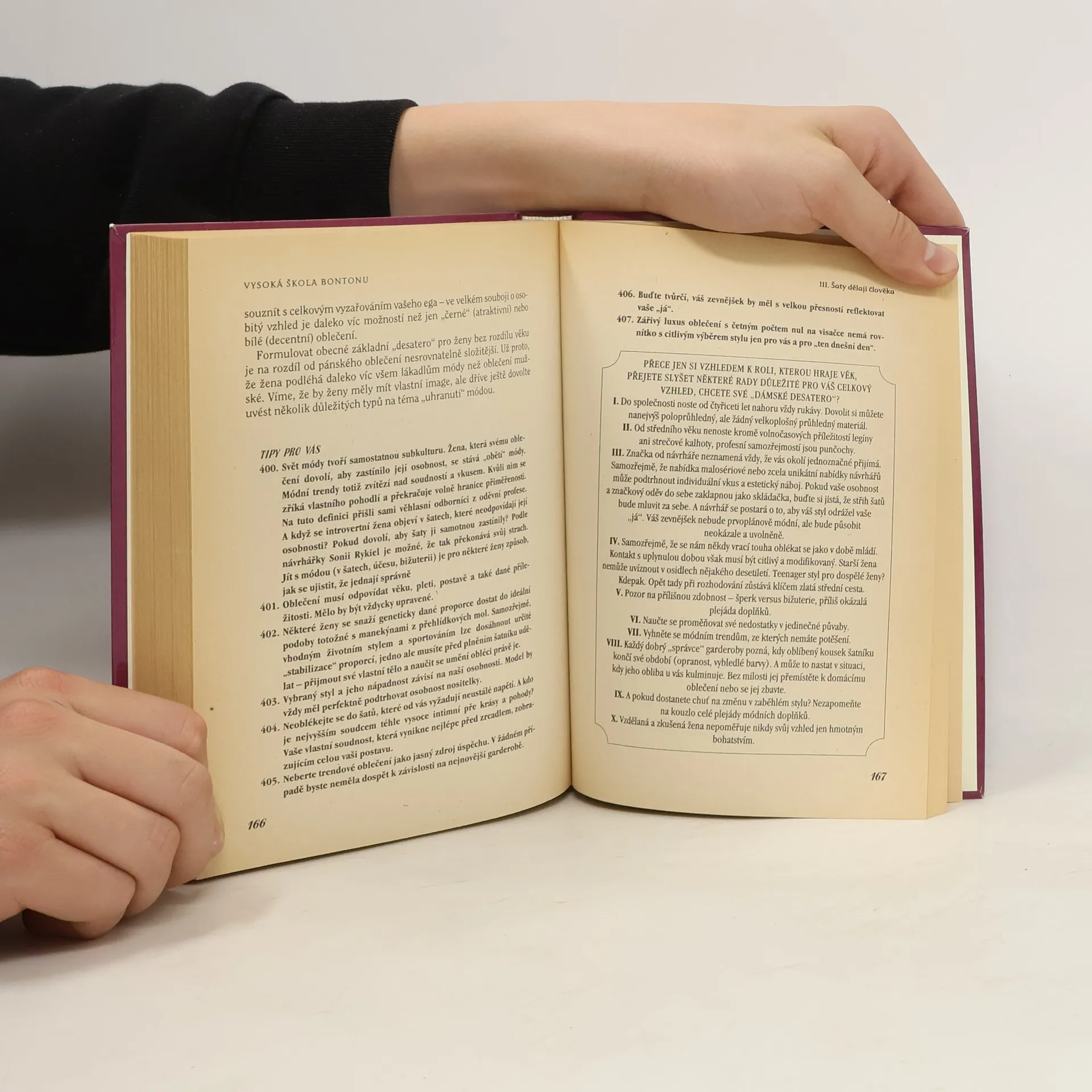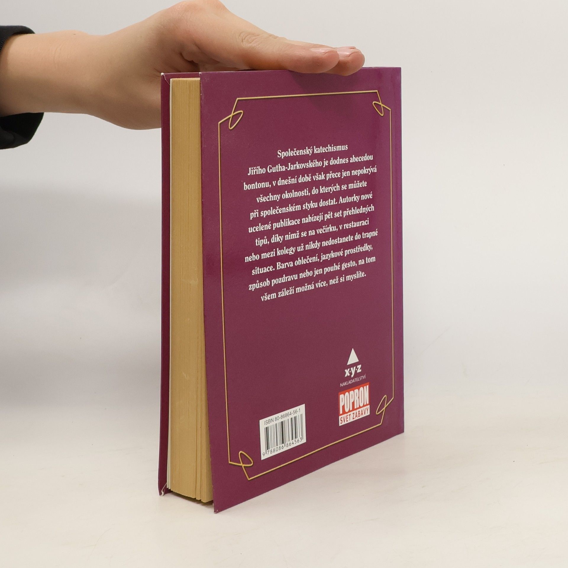 Společenský katechismus Jiřího Gutha-Jarkovského je dodnes abecedou bontonu, v dnešní době však přece jen nepokrývá všechny okolnosti, do kterých se můžete při společenském styku dostat. Autorky nové ucelené publikace nabízejí pět set přehledných tipů, díky nimž se na večírku, v restauraci nebo mezi kolegy už nikdy nedostanete do trapné situace. Barva oblečení, jazykové prostředky, způsob pozdravu nebo jen pouhé gesto, na tom všem záleží možná více, než si myslíte