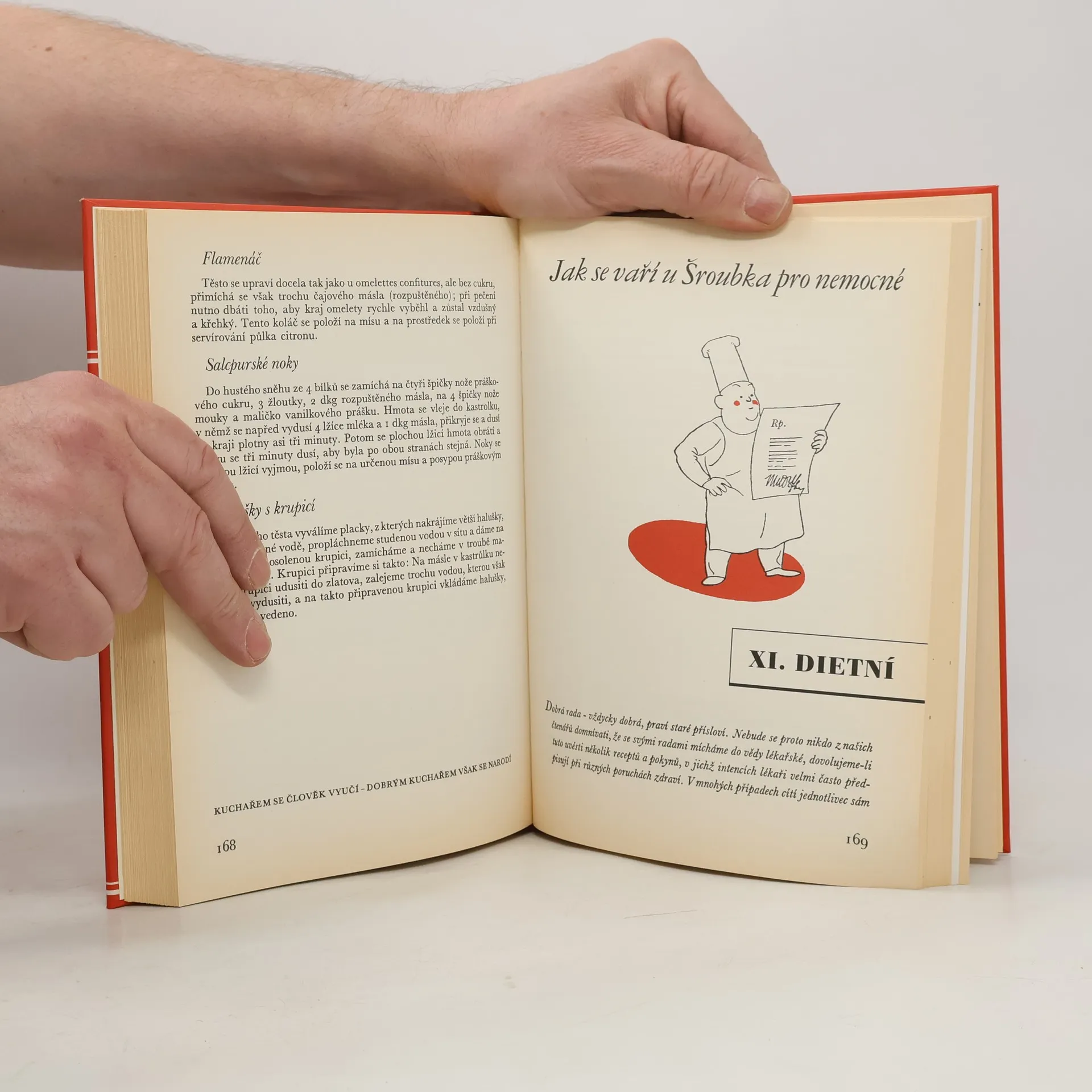 Krásný a historicky věrný reprint kuchařské knihy, kterou vydával majitel známeho Grand hotelu Šroubek, pozdější Evropy a dnešního "W Prague" na Václavském náměstí v době svojí největší slávy ve 30. letech 20. století. Tato verze je podle mě ještě hezčí než ta vázaná, protože přesně takto vypadalo původní vydání - od originálu se liší jen čárovým kódem. Obsahuje výběr receptů hotelové restaurace, které jsou napsané i na dnešní poměry velmi srozumitelně, a snadno tak podle nich můžete vařit. Je to krásná a zajímavá kniha, která stojí zlomek ceny originálu.