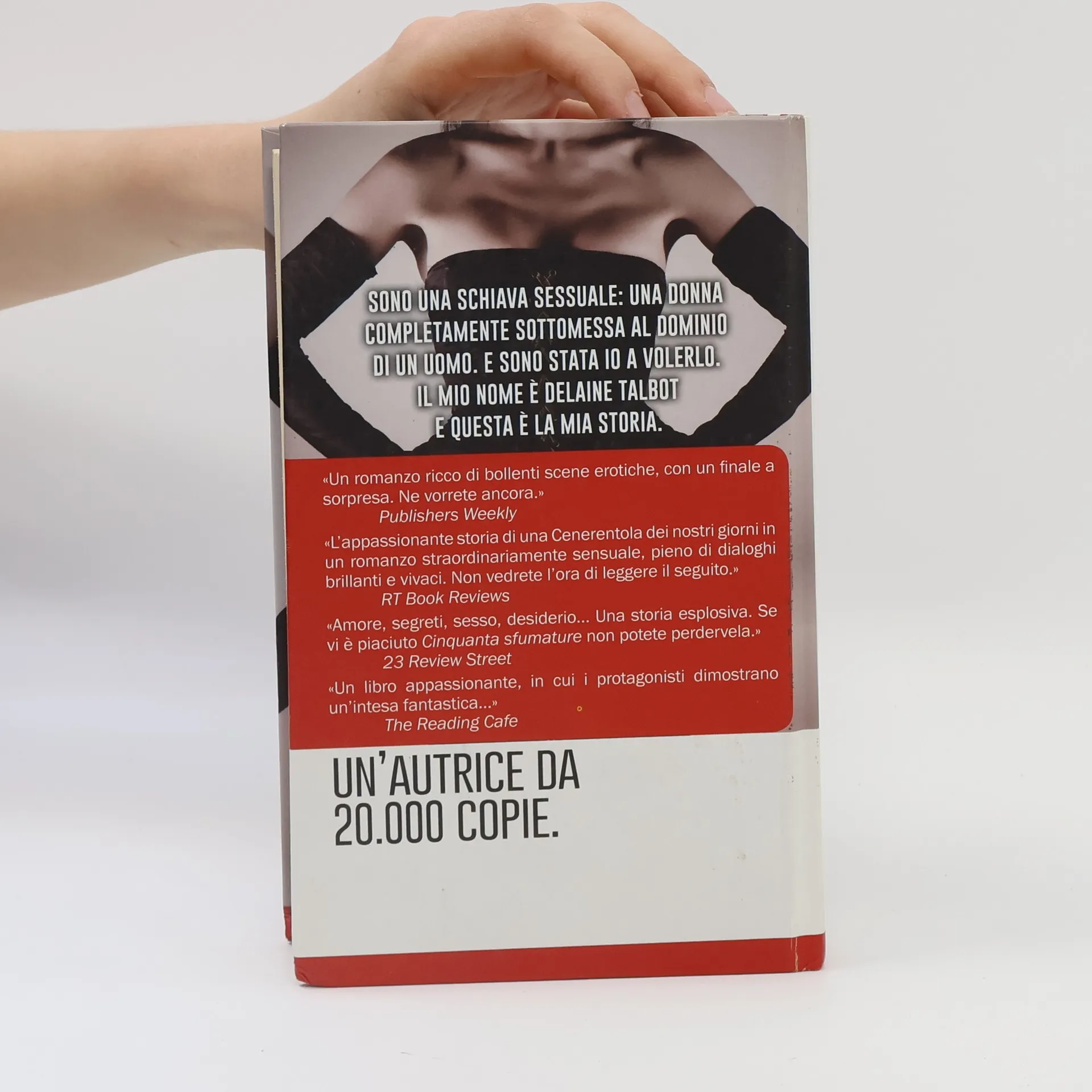 Rispettare il loro accordo sarà puro piacere Schiava del sesso, prigioniera della passione Lanie ha 24 anni e sua madre è molto malata. La sua salute peggiora di giorno in giorno e ha bisogno di cure mediche molto costose. Lanie, disposta a tutto pur di trovare i soldi necessari, decide di vendere l’unica cosa che ha e che può avere un valore: il suo corpo. L’uomo misterioso che paga per possederla è Noah Crawford, uno scapolo ricco, affascinante e cinico perché deluso dalle donne e dall’amore. In cambio di due milioni di dollari, per due anni Lanie sarà la sua schiava: dovrà vivere con lui nella sua lussuosa villa, dormire nel suo stesso letto ed essere sempre a disposizione per soddisfare tutte le sue fantasie. Ma Lanie ancora non sa che gli audaci giochi in cui Noah la coinvolgerà le procureranno sensazioni inaspettate. Lui le farà da maestro, senza mai lasciarsi coinvolgere. Finché quel sesso sfrenato e così appagante non lascerà spazio anche a qualcos’altro, e ciò che era iniziato come un contratto da rispettare si trasformerà in puro, irrefrenabile desiderio… Sono una schiava sessuale: una donna completamente sottomessa al dominio di un uomo. E sono stata io a volerlo. Il mio nome è Delaine Talbot e questa è la mia storia. «Un romanzo ricco di bollenti scene erotiche, con un finale a sorpresa. Ne vorrete ancora.» Publishers Weekly «L’appassionante storia di una Cenerentola dei nostri giorni in un romanzo straordinariamente sensuale, pieno di dialoghi brillanti e vivaci. Non vedrete l’ora di leggere il seguito.» RT Book Reviews «Amore, segreti, sesso, desiderio… Una storia esplosiva. Se vi è piaciuto Cinquanta sfumature non potete perdervela.» 23 Review Street «Un libro appassionante, in cui i protagonisti dimostrano un’intesa fantastica…» The Reading Cafe Un'autrice da 20.000 copie