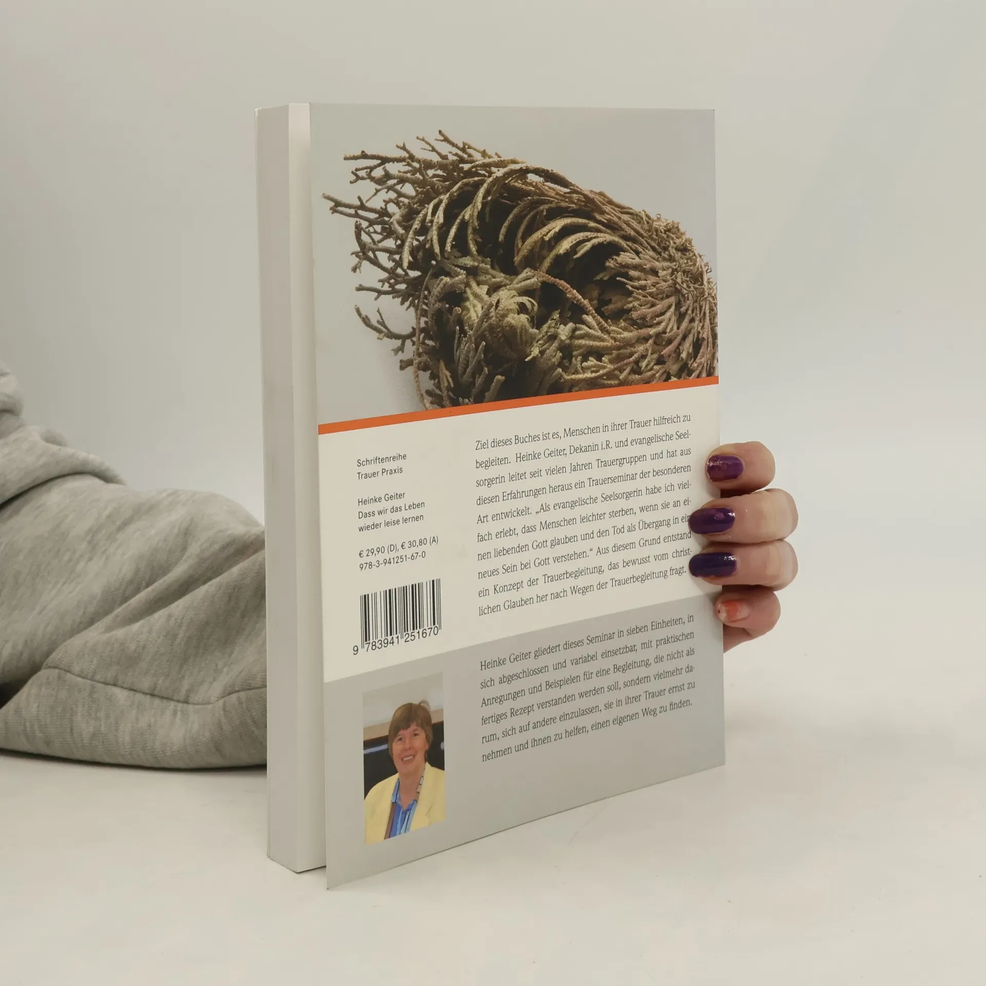 Ziel dieses Buches ist es, Menschen in ihrer Trauer hilfreich zu begleiten. Heinke Geiter, Dekanin i.R. und evangelische Seelsorgerin leitet seit vielen Jahren Trauergruppen und hat aus diesen Erfahrungen heraus ein Trauerseminar der besonderen Art entwickelt. „Als evangelische Seelsorgerin habe ich vielfach erlebt, d Menschen leichter sterben, wenn sie an einen liebenden Gott glauben und den Tod als Übergang in ein neues Sein bei Gott verstehen.“ Aus diesem Grund entstand ein Konzept der Trauerbegleitung, das bewusst vom christlichen Glauben her nach Wegen der Trauerbegleitung fragt. Heinke Geiter gliedert dieses Seminar in sieben Einheiten, in sich abgeschlossen und variabel einsetzbar, mit praktischen Anregungen und Beispielen für eine Begleitung, die nicht als fertiges Rezept verstanden werden soll, sondern vielmehr darum, sich auf andere einzulen, sie in ihrer Trauer ernst zu nehmen und ihnen zu helfen, einen eigenen Weg zu finden.