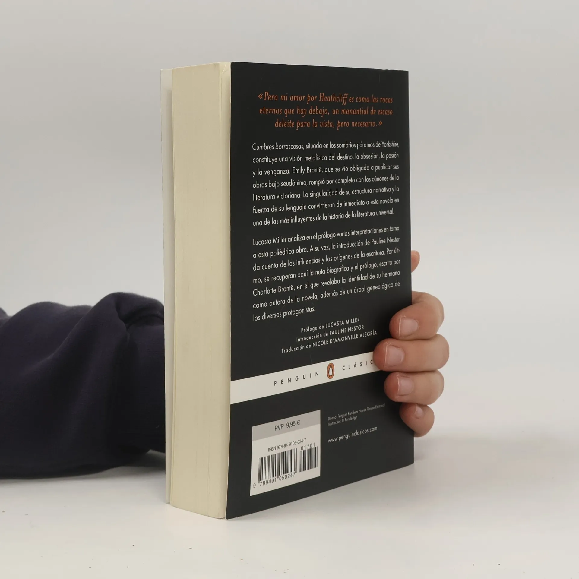 Los mejores libros jamás escritos. Una de las mayores historias de amor de la literatura y quizá la mejor representante del Romanticismo inglés. Cumbres borrascosas, la épica historia de Catherine y Heathcliff, situada en los sombríos y desolados páramos de Yorkshire, constituye una asombrosa visión metafísica del destin o, la obsesión, la pasión y la venganza. Con ella, Emily Brontë, que se vio obligada a ocultar su género publicando sus obras bajo seudónimo, rompió por completo con los cánones del decoro que la Inglaterra victoriana exigía en toda novela, tanto en el tema escogido como en la descripción de los personajes. La singularidad de su estructura narrativa y la fuerza de su lenguaje la convirtieron de inmediato en una de las obras más perdurables e influyentes de la historia de la literatura. Lucasta Miller, autora de The Brontë Myth (2001), analiza en el prefacio de la presente edición las diferentes interpretaciones que se han hecho de esta polémica obra. A su vez, la introducción de la profesora Pauline Nestor da cuenta de las influencias y los orígenes de Emily Brontë como escritora. Por último, esta edición incorpora la nota biográfica y el prefacio original, escrito por Charlotte, en el que revelaba su verdadera identidad, junto a un árbol genealógico de los protagonistas de la novela. «Pero mi amor por Heathcliff es como las rocas eternas que hay debajo, un manantial de escaso deleite para la vista, pero necesario.» <b>ENGLISH DESCRIPTION</b> Wuthering Heights is Emily Brontë's first and only published novel, written between October 1845 and June 1846, and published in 1847 under the pseudonym Ellis Bell; Brontë died the following year, aged 30. The decision to publish came after the success of her sister Charlotte's novel, Jane Eyre. After Emily's death, Charlotte edited the manuscript of Wuthering Heights, and arranged for the edited version to be published as a posthumous second edition in 1850. Wuthering Heights is the name of the farmhouse where the story unfolds. The book's core theme is the destructive effect of jealousy and vengefulness both on the jealous or vengeful individuals and on their communities.