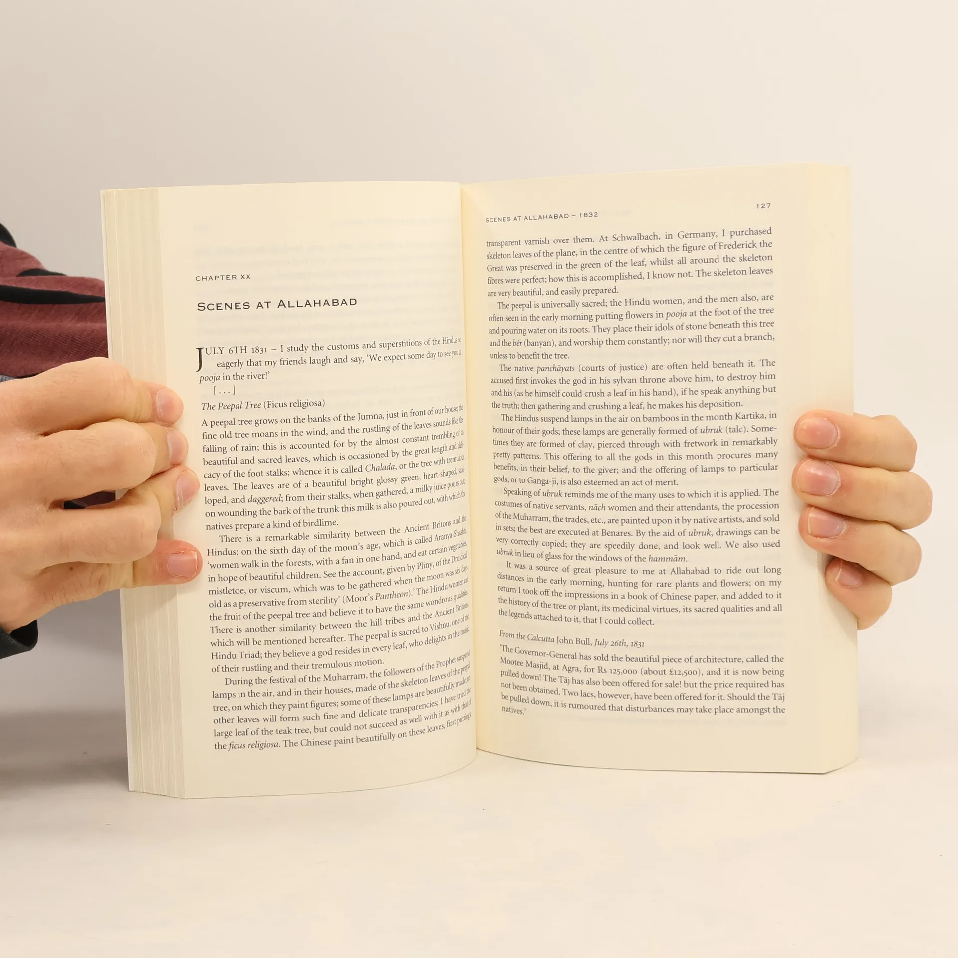 Fanny Parkes, who lived in India between 1822 and 1846, was the ideal travel writer - courageous, indefatigably curious and determinedly independent. Her delightful journal traces her journey from prim memsahib, married to a minor civil servant of the Raj, to eccentric, sitar-playing Indophile, fluent in Urdu, critical of British rule and passionate in her appreciation of Indian culture. Fanny is fascinated by everything, from the trial of the thugs and the efficacy of opium on headaches to the adorning of a Hindu bride. To read her is to get as close as one can to a true picture of early colonial India - the sacred and the profane, the violent and the beautiful, the straight-laced sahibs and the more eccentric "White Mughals" who fell in love with India and did their best, like Fanny, to build bridges across cultures.