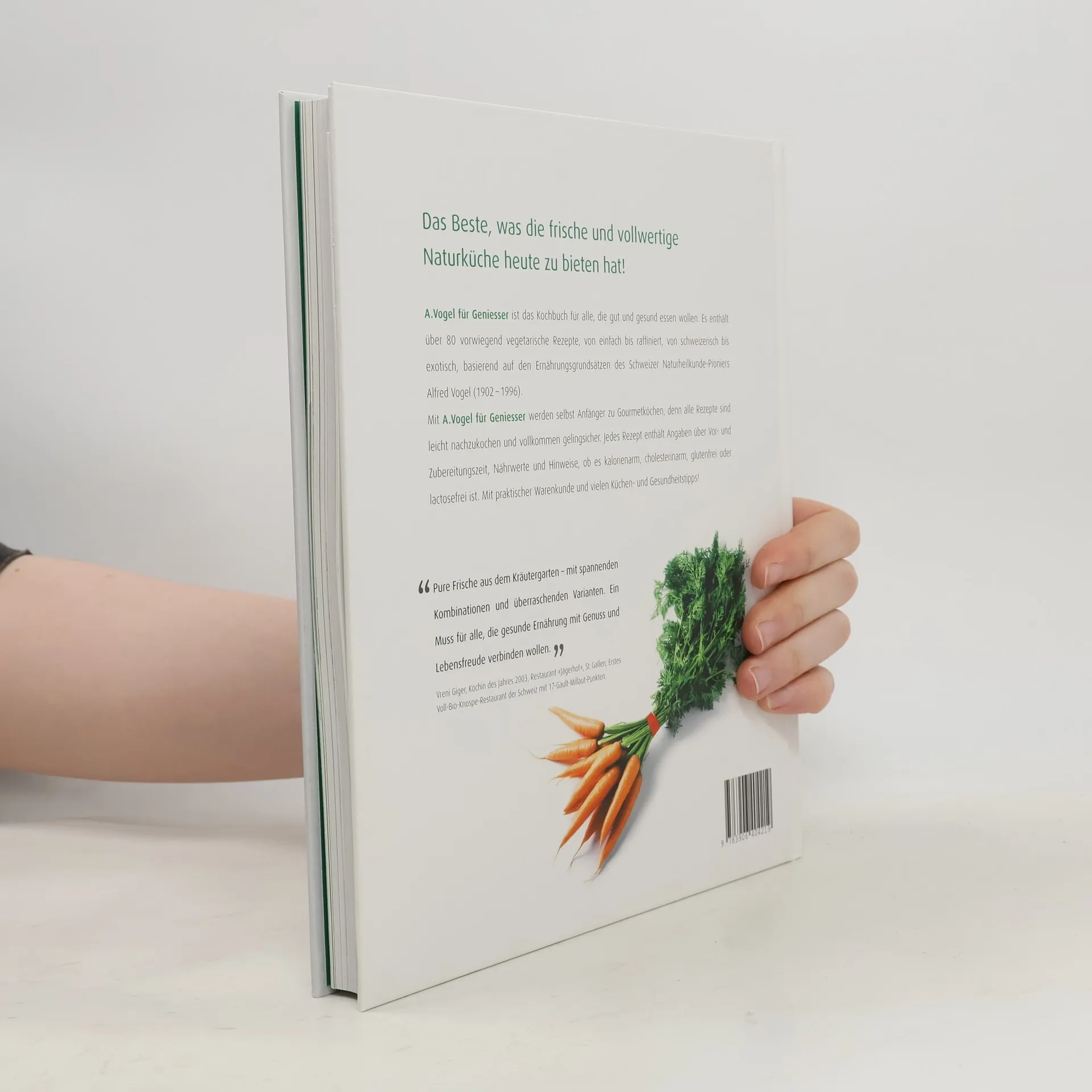 Der Name A. Vogel steht für Gesundheit und die Frische der Natur. Das A. Vogel Kochbuch verwandelt gesundes Essen in puren Genuss. Mit Rezepten wie Tomaten-Zucchini-Salat mit Lavendel, Jakobsmuscheln auf Limetten-Lauch und würziger Chili-Schokolade wird jeder Gaumen verwöhnt. Aufgeteilt in die Kapitel 'Kalte Vorspeisen und kleine Gerichte', 'Warme Vorspeisen und Zwischengerichte', 'Hauptgerichte', 'Süssspeisen' und 'Getränke' bietet das Buch 70 raffinierte Rezepte von Felix Häfliger, begleitet von exquisiten Fotografien. Ingrid Schindler erläutert in der Einleitung, wie einfach gesunde Ernährung heute ist. Jedes Kapitel enthält einen Warenkunde-Teil, und jedes Rezept gibt Auskunft über Zubereitungszeit und Nährwert. So erfährt man auf einen Blick, ob ein Gericht kalorienarm, cholesterinfrei, glutenfrei oder laktosefrei ist. Die Autoren haben die Ernährungsgrundsätze des Naturheilkunde-Pioniers Alfred Vogel neu interpretiert. Ihr Fazit: Guter Geschmack ist gesunder Geschmack, und 'Weniger essen, dafür Besseres'. Für alle, die gesundes Essen genießen möchten, bietet dieses Buch das Beste aus der frischen, vollwertigen Naturküche.