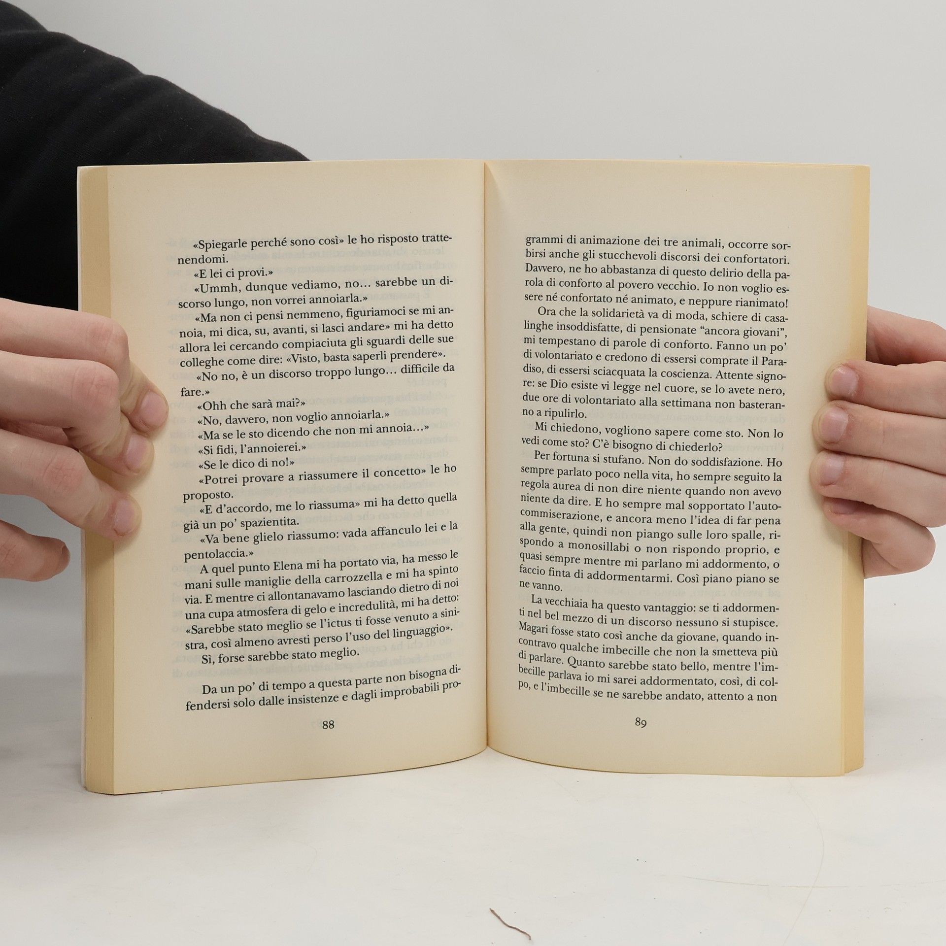 Questa è la storia di Tommaso Perez, brillante fisico nucleare, la sorprendente parabola della sua esistenza, dei suoi anni d'oro in compagnia dei più grandi scienziati del Novecento e dei suoi anni grigi confinato in una casa di riposo, inchiodato su una carrozzella. Ma la vita è così, ti porta in alto, ti fa credere di aver intuito l'assoluto, ti illude di aver compreso il senso delle cose, e poi ti risputa come un nocciolo di prugna. Tommaso Perez, in effetti, tutto ha creduto e sperato tranne di voltare pagina oltre i settanta, quando Elena, senza preavviso, entra nel suo mondo e a poco a poco lo rivoluziona.