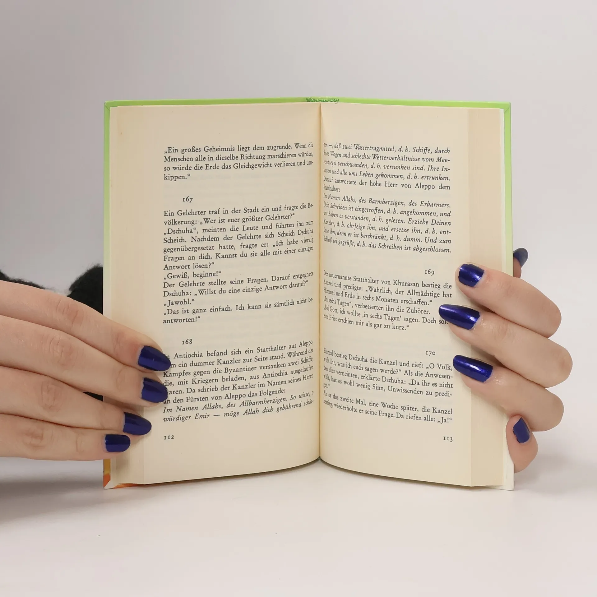 Die Fabulierfreude des alten Morgenlandes, wie wir sie aus „Tausendundeine Nacht“ kennen, hat sich in der Anekdote des frühen Arabien mit heiter-ironischem Spott und dreistem Draufgängertum verbunden. 49 Sammlungen aus dem 7. bis 10. Jahrhundert wurden für diese Ausgabe berücksichtigt. Sammlungen, in denen über 100 Weisen und Narren in den Mund gelegt wird, was Generationen über ihre Zeit und über den Lauf der Welt dachten, was sie von ihren Herren, den Kalifen und Emiren, den Richtern und Gelehrten hielten. So sind diese Anekdoten von Geizigen und Schmarotzern, Dieben und Witzbolden Gleichnisse von der alten Sehnsucht des Menschen, die Welt in Gleichgewicht zu bringen.