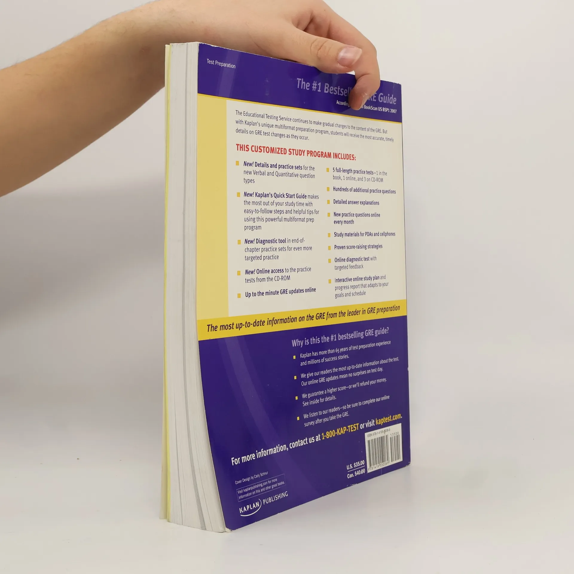The Education Testing Service continues to make gradual changes to the content of the GRE. But with this unique multi-format preparation program, students will receive the most accurate, timely details on the GRE test change. With features such as updates and useful resources on test changes posted directly to your online syllabus, test takers can depend on Kaplan for the most complete and up-to-the-minute information.This customized study program includes:-- The latest information on the November 2007 updates, including samples of the two new question types with detailed answer explanations.-- Up-to-the-minute GRE updates online-- 5 full-length practice tests (1 in the book, 1 online, and 3 on CD-ROM)-- Hundreds of additional practice questions-- Detailed answer explanations-- Interactive online study plan and progress report that adapts to your goals and schedule-- Diagnostic test to target areas for score improvement-- Kaplan-exclusive score-raising strategies-- Essential tactics for the computer-adaptive test (CAT) format