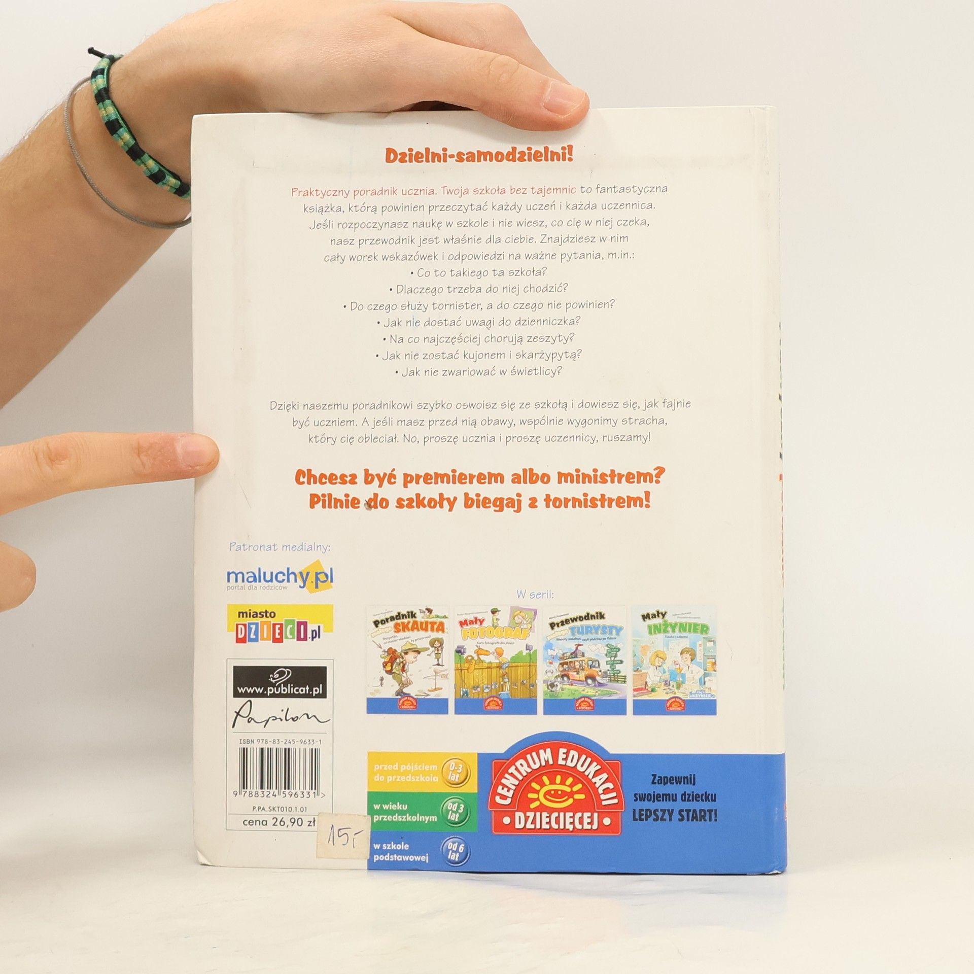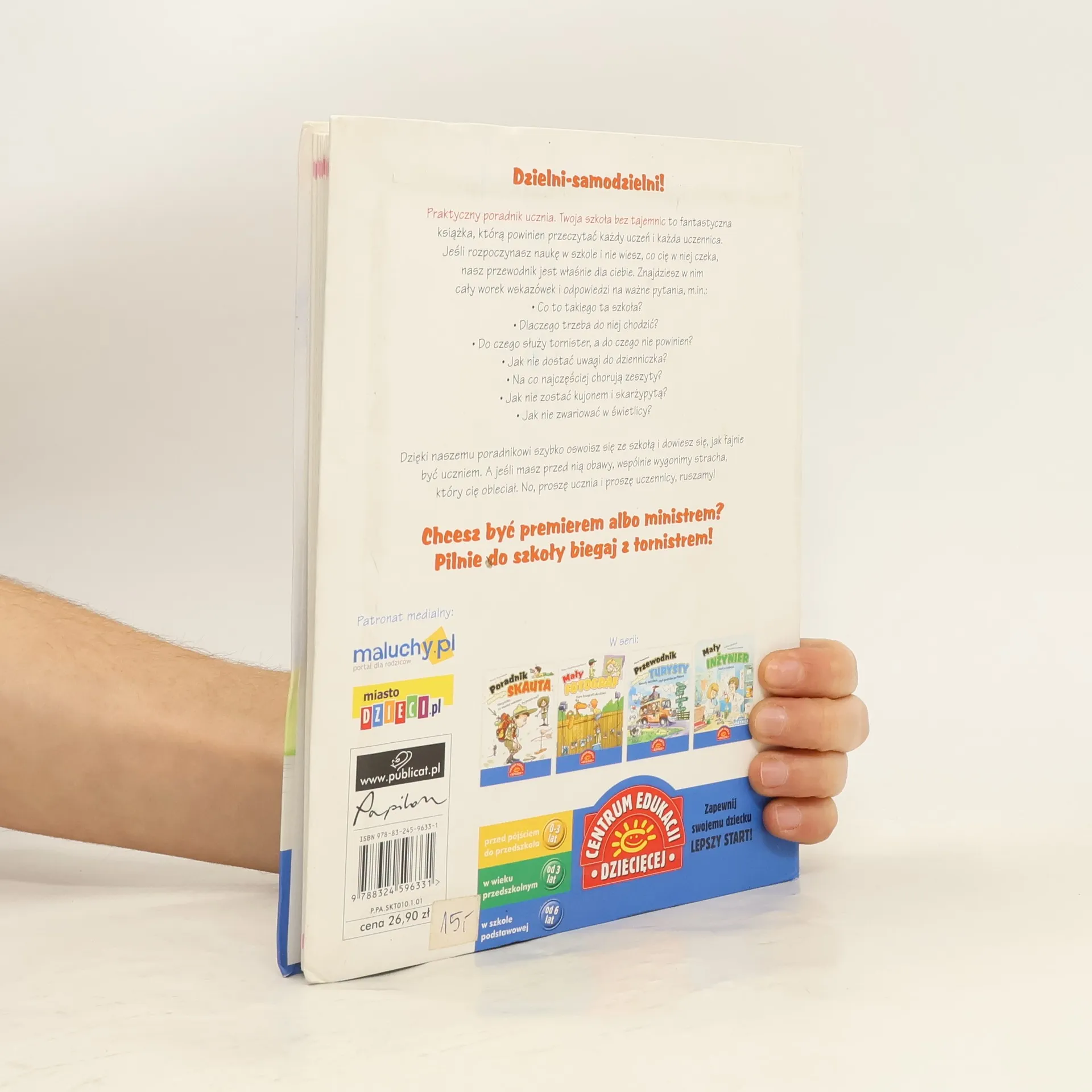 To fantastyczna książka, którą powinien przeczytać każdy uczeń i każda uczennica. Jeśli rozpoczynasz naukę w szkole i nie wiesz, co cię w niej czeka, nasz przewodnik jest właśnie dla ciebie. Znajdziesz w nim worek wskazówek i odpowiedzi na ważne pytania: Co to takiego ta szkoła? Dlaczego trzeba do niej chodzić? Jak nie dostać uwagi do dzienniczka? Jak nie zwariować w świetlicy?