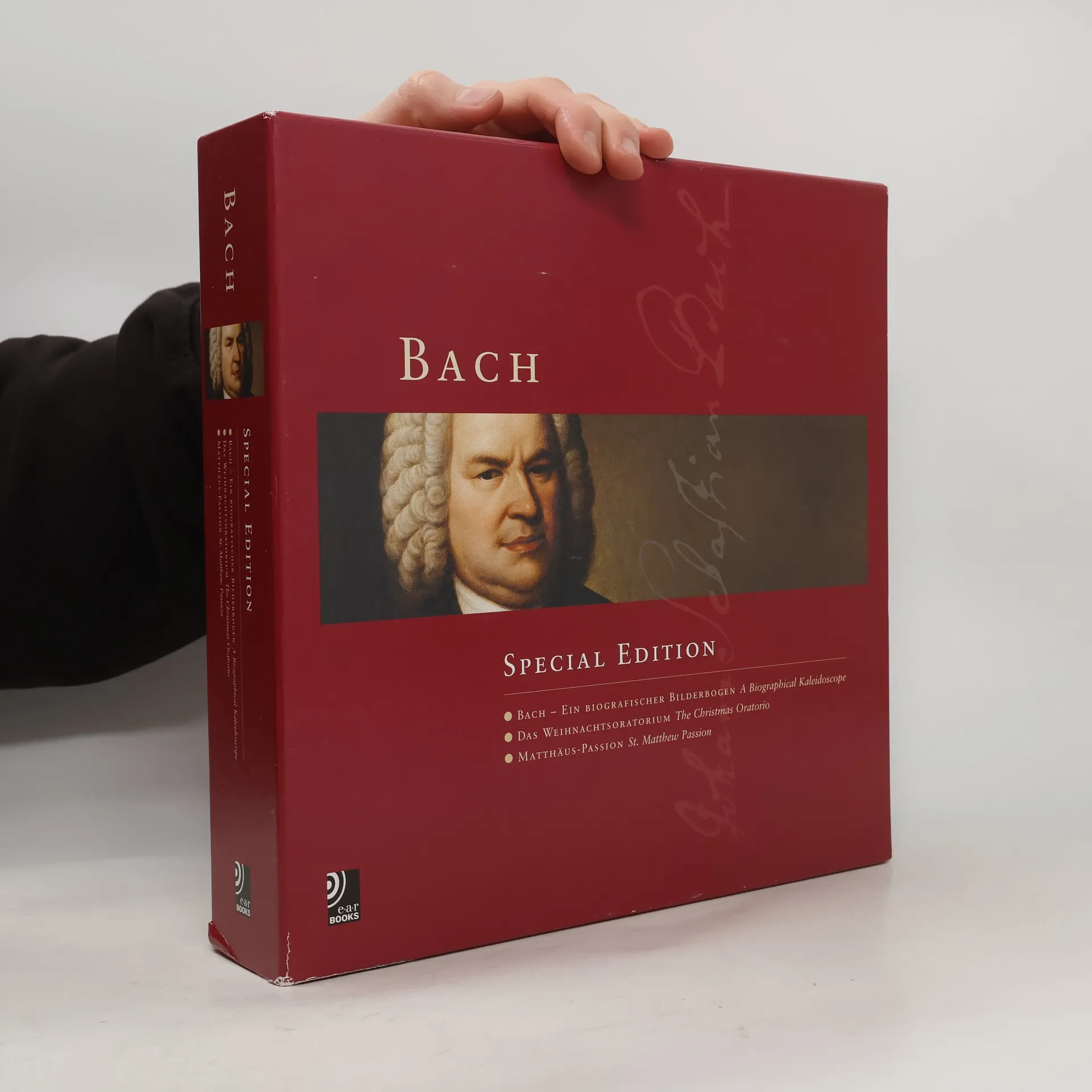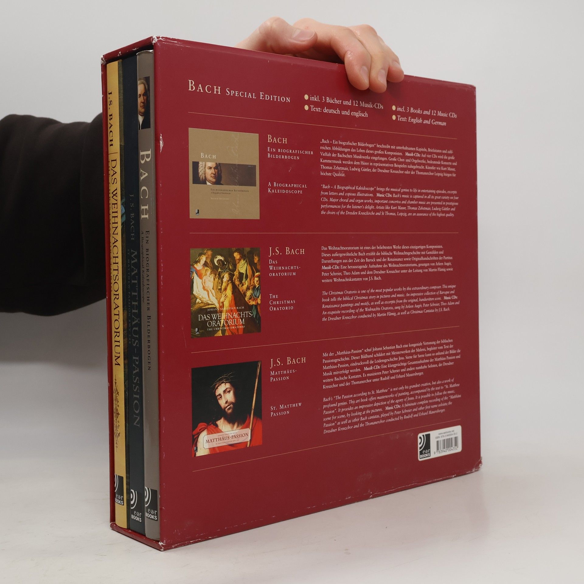 3 books & 12 CDs in slipcase. Exploring the universe of J S Bach -- 3 earBooks in one exclusive slipcase -- Bach: A Biographical Kaleidoscope, The Christmas Oratorio and St Matthew's Passion.