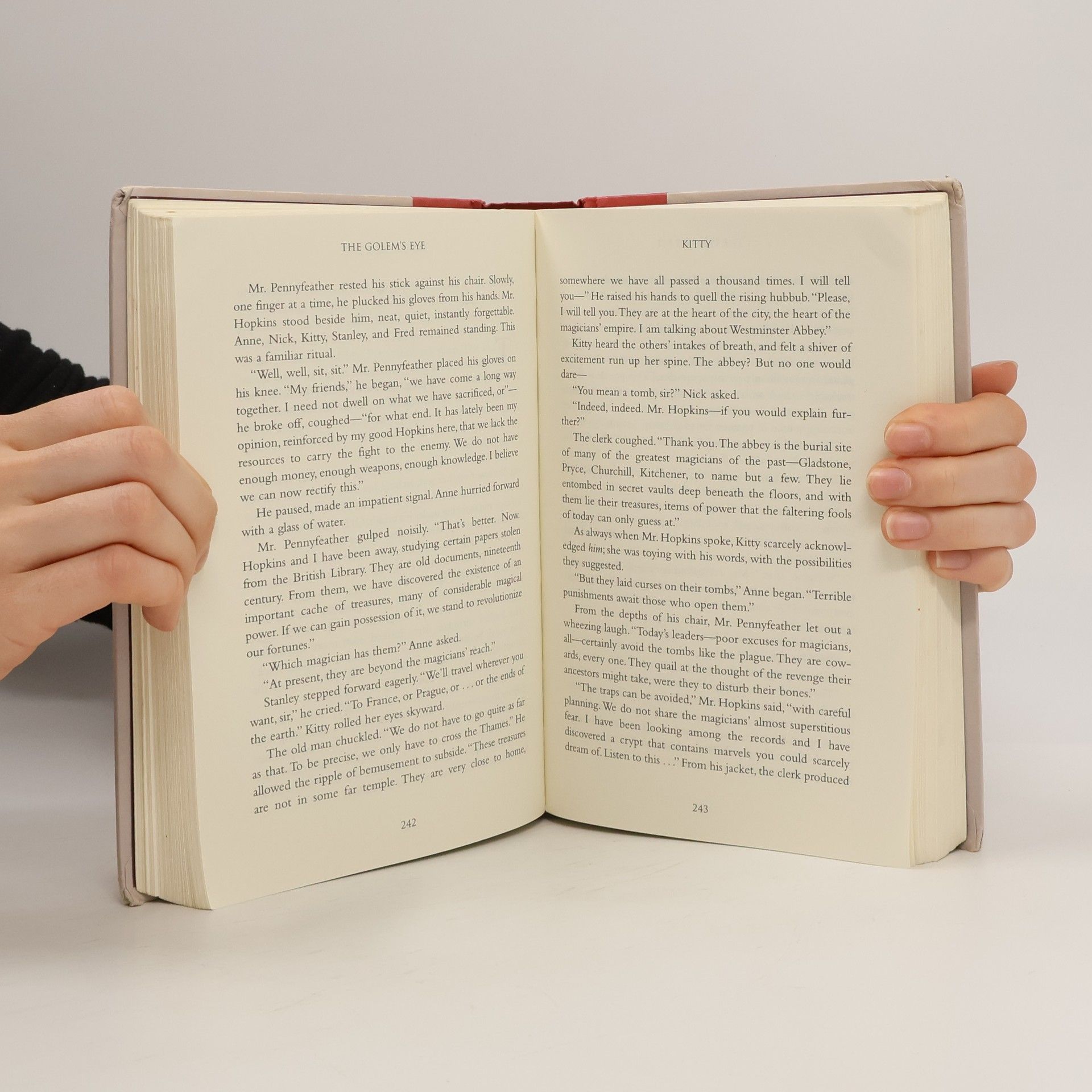 The second adventure in the Bartimaeus trilogy finds our young apprentice magician Nathaniel working his way up the ranks of the government, when crisis hits. A seemingly invulnerable clay golem is making random attacks on London. Nathaniel and the all-powerful, totally irreverent djinni, Bartimaeus, must travel to Prague to discover the source of the golem's power. In the ensuing chaos, readers will chase a dancing skeleton across London's skyline, encounter the horror of the dreaded Night Police, witness a daring kidnapping, and enter the Machiavellian world of the magician's government. Eventually, Nathaniel and Bartimaeus have to go head to head with the fearsome golem before the surprise identity of his master is finally revealed.