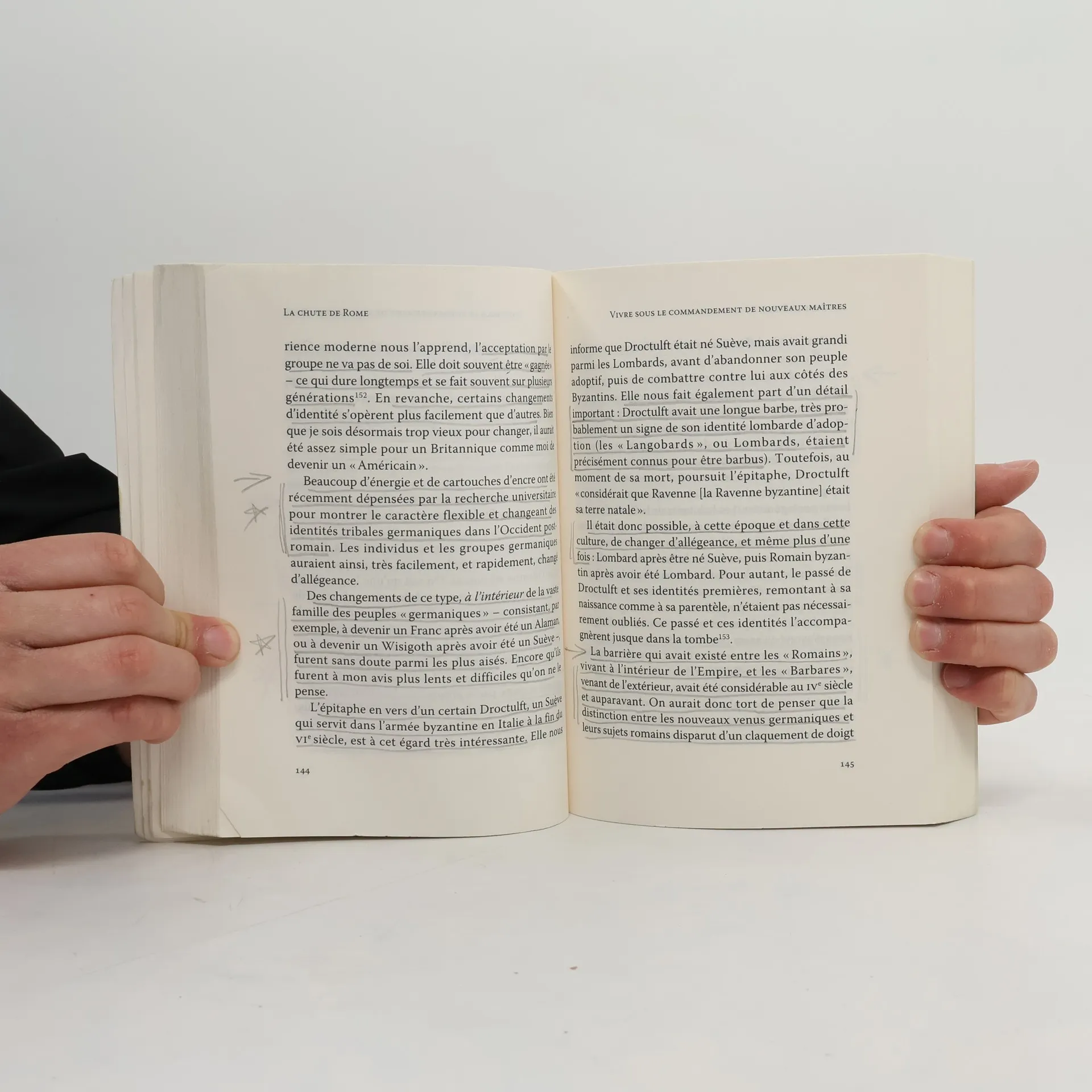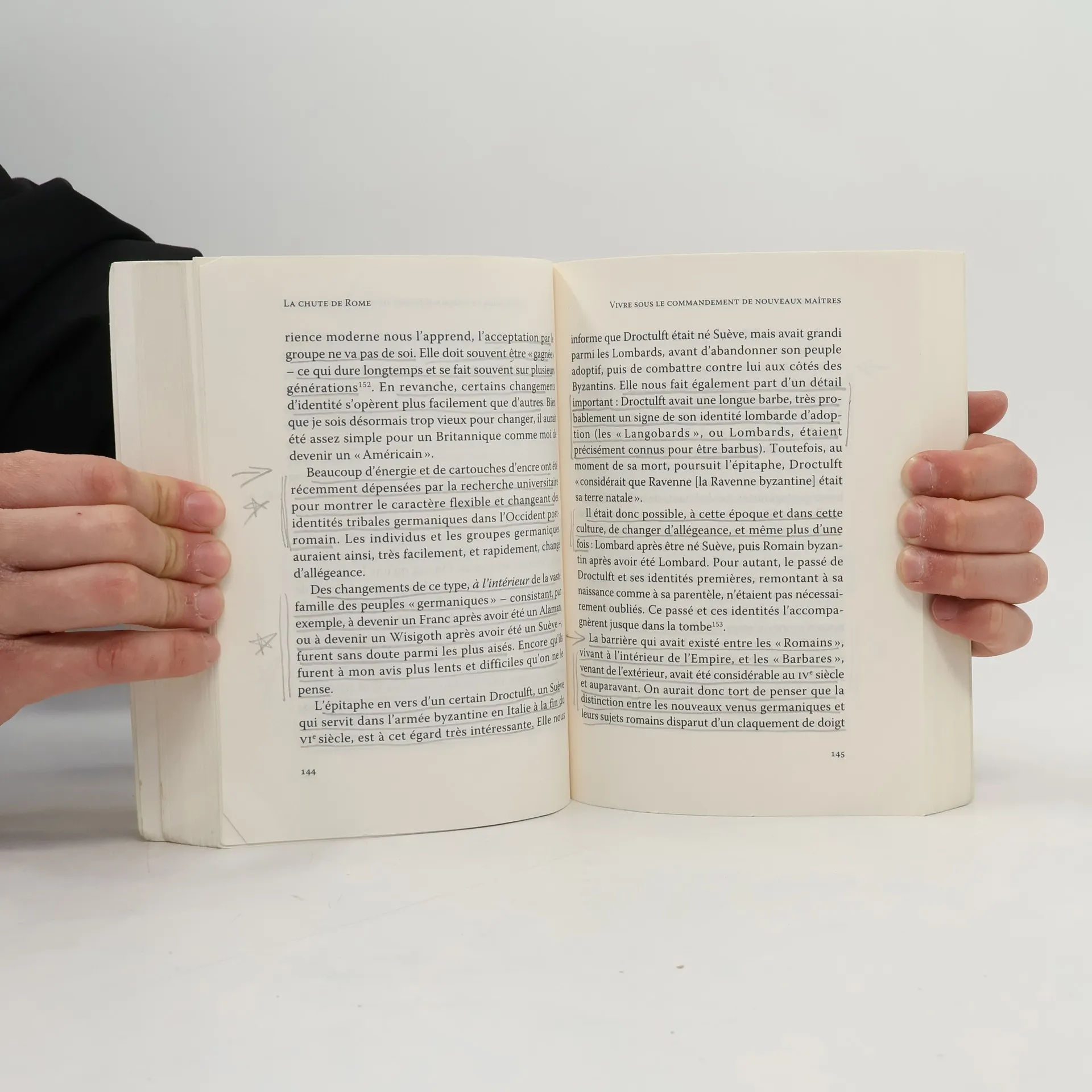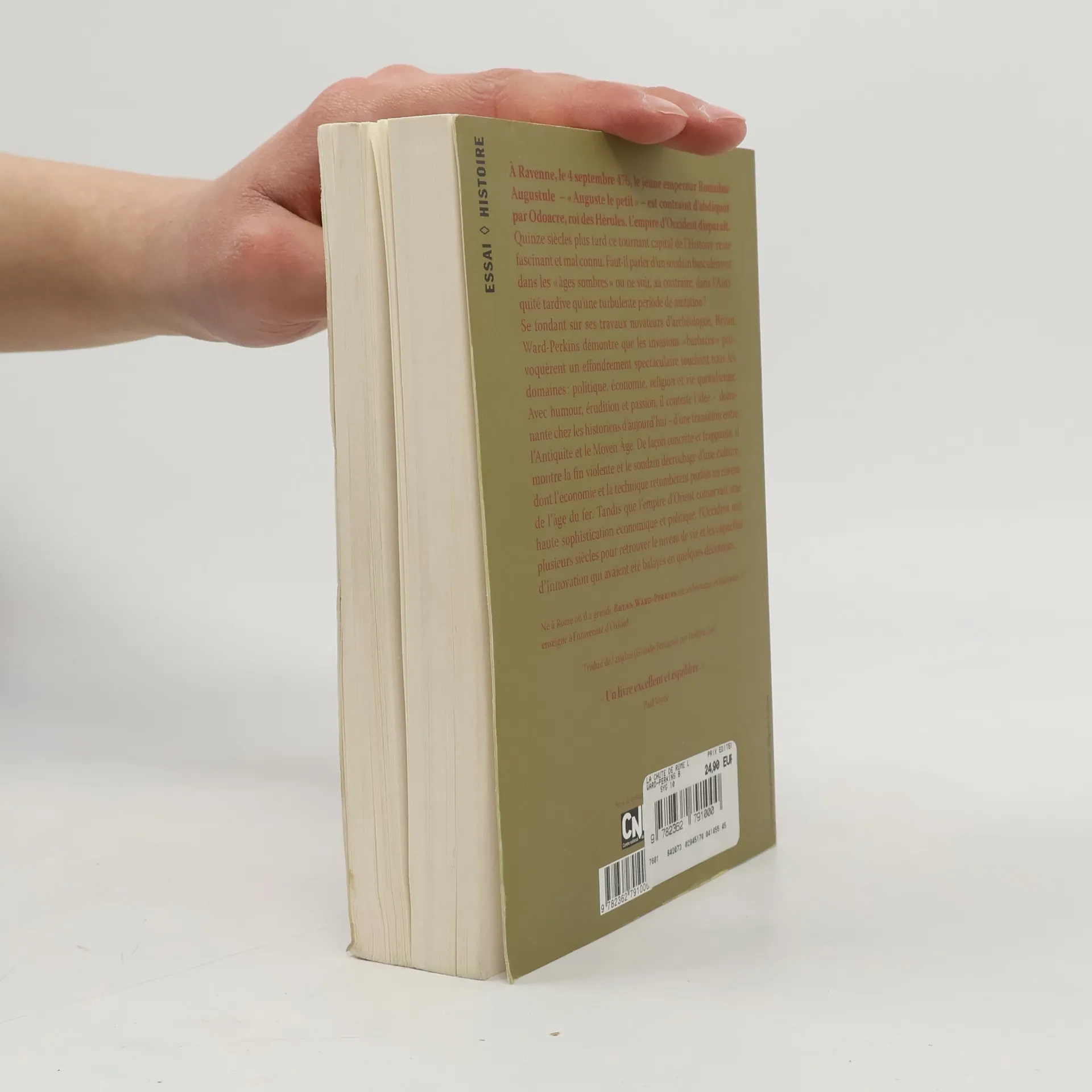 À Ravenne, le 4 septembre 476, le jeune empereur Romulus Augustule – " le petit Auguste " – est contraint d'abdiquer par Odoacre, roi des Hérules – un peuple germanique venu de Scandinavie s'installer sur les bords de la mer Noire. L'empire d'Occident disparaît, ce qui est vécu comme une fin du monde par les habitants de l'aire culturelle et politique romaine. Quinze siècles plus tard ce tournant capital de l'Histoire reste fascinant et mal connu. Parler de la chute de Rome, des grandes invasions et du remodelage tumultueux de l'Europe par les royaumes barbares, c'est aussi s'interroger sur notre propre culture, sur les identités nationales et sur la hantise du déclin. Faut-il parler d'un soudain basculement dans les " âges sombres " ou ne voir, au contraire, dans les temps troublés de l'Antiquité tardive, qu'une turbulente période de mutation ?