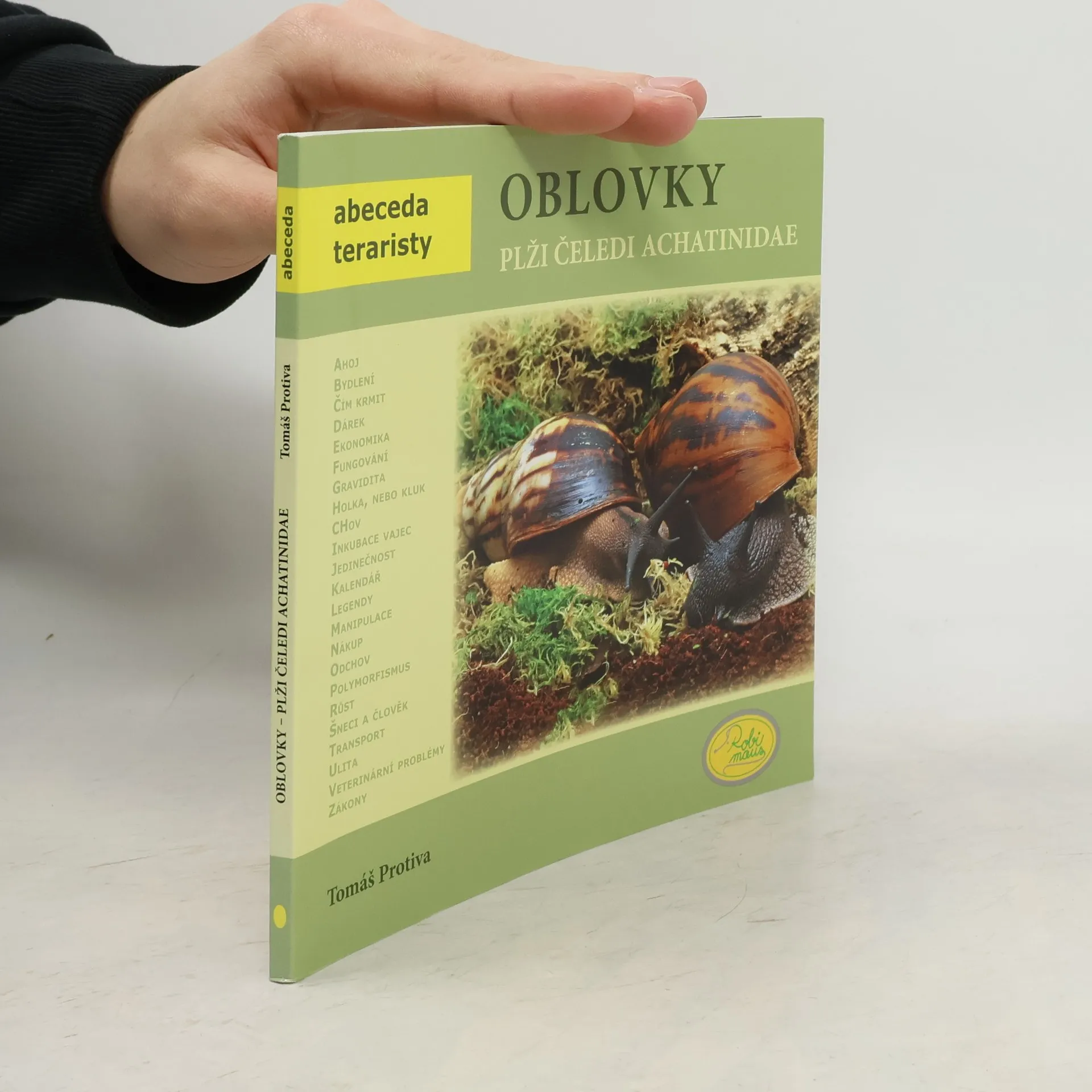 Základní informace o oblovkách a teraristice doplňují kapitoly věnované veškerým otázkám kolem odchovu - krmení, úprava terária, veterinární problematika a další. Nejrozsáhlejší část se zabývá druhovou rozmanitostí největšího suchozemského plže. V pořadí již 17. titul z edice Abeceda teraristy. Chov oblovek v zajetí je v porovnání s dalšími domácími zvířaty velmi jednoduchý a šneci nás nijak významně neomezují. Naopak nám ukazují jak i takto jednodušší živočichové jsou dokonale přizpůsobeni svému prostředí a představují jeden z mnoha zázraků přírody. Tato kniha Tomáše Protivy je určena jak pro začínající, tak i zkušené chovatele. Kapitoly jsou řazeny podle abecedních hesel, doplněné množstvím fotografií a popisů. Chovu plžů se autor knihy Tomáš Protiva ve větší míře věnuje již 4 roky. Nejen za nimi se také pravidelně vydává do tropů jihovýchodní Asie s cílem lépe poznat biologii jednotlivch druhů. Z téhož důvodu také zřídil jeden z největších chovů suchozemských plžů v Evropě a dále ho rozšiřuje. Většinu druhů pravidelně rozmnožuje a u některých se jedná dokonce o první odchovy v Evropě. Kniha je vhodná pro všechny, kteří by se chtěli věnovat chovu těchto na péči nenáročných suchozemských plžů. Obsahuje všeobecné informace jako je například bydlení, krmení, chov, veterinární problémy či transport. Součástí knihy je i přehled jednotlivých druhů. Vše je doplněno mnoha názornými barevnými fotografiemi.