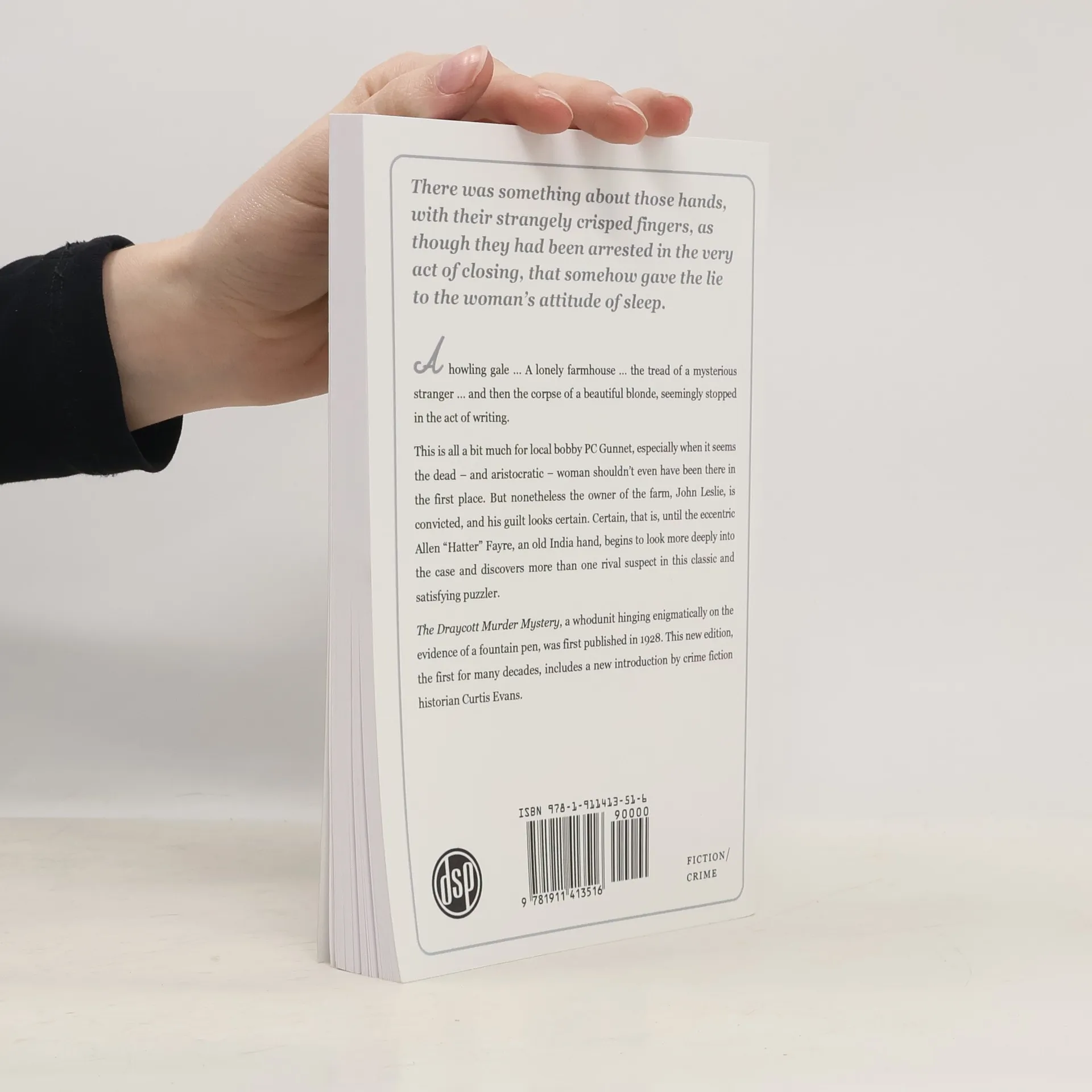 <em>There was something about those hands, with their strangely crisped fingers, as though they had been arrested in the very act of closing, that somehow gave the lie to the woman's attitude of sleep.</em> A howling gale ... A lonely farmhouse ... the tread of a mysterious stranger ... and then the corpse of a beautiful blonde, seemingly stopped in the act of writing. This is all a bit much for local bobby PC Gunnet, especially when it seems the dead - and aristocratic - woman shouldn't even have been there in the first place. But nonetheless the owner of the farm, John Leslie, is convicted, and his guilt looks certain. Certain, that is, until the eccentric Allen "Hatter" Fayre, an old India hand, begins to look more deeply into the case and discovers more than one rival suspect in this classic and satisfying puzzler. <em>The Draycott Murder Mystery</em>, a whodunit hinging enigmatically on the evidence of a fountain pen, was first published in 1928. This new edition, the first for many decades, includes a new introduction by crime fiction historian Curtis Evans.