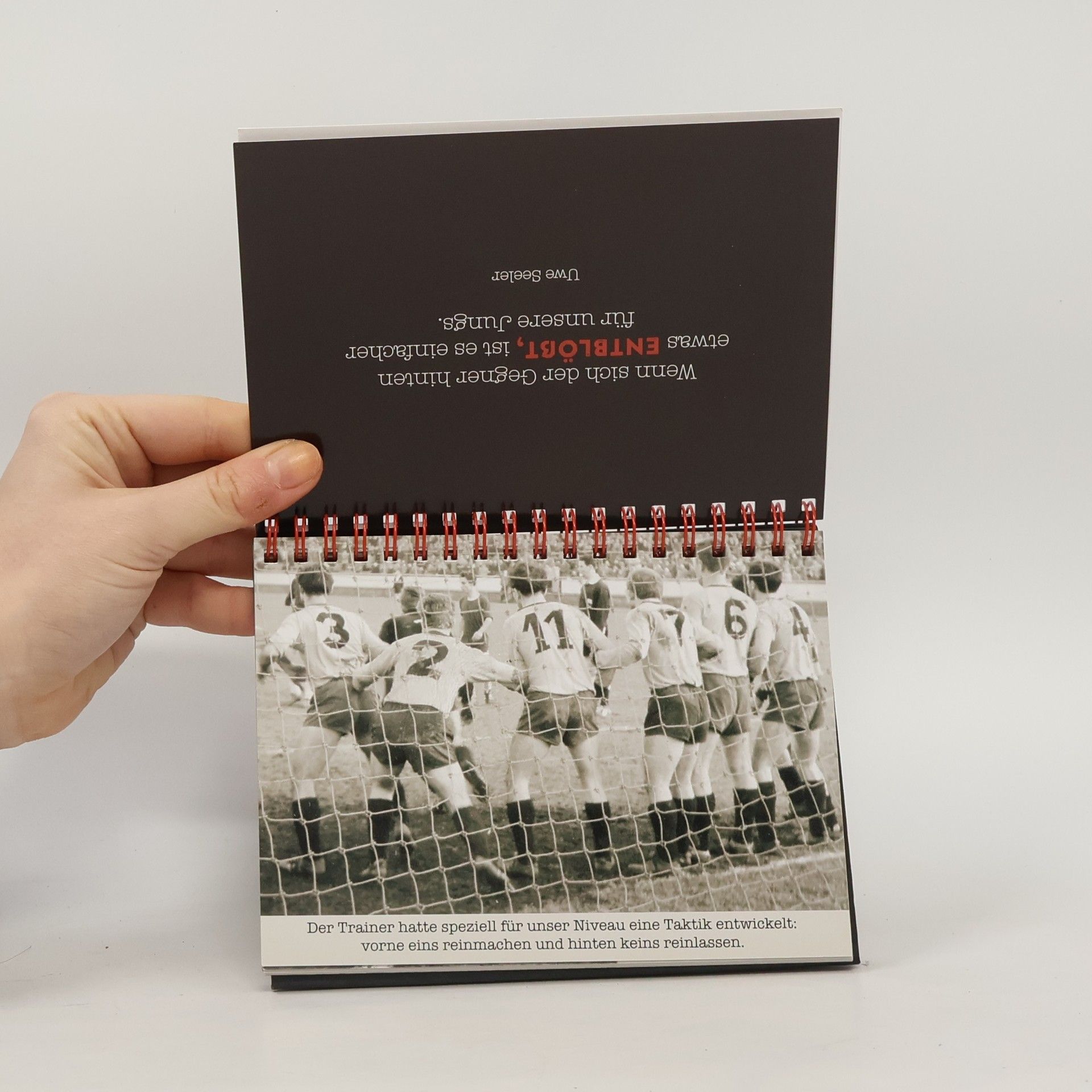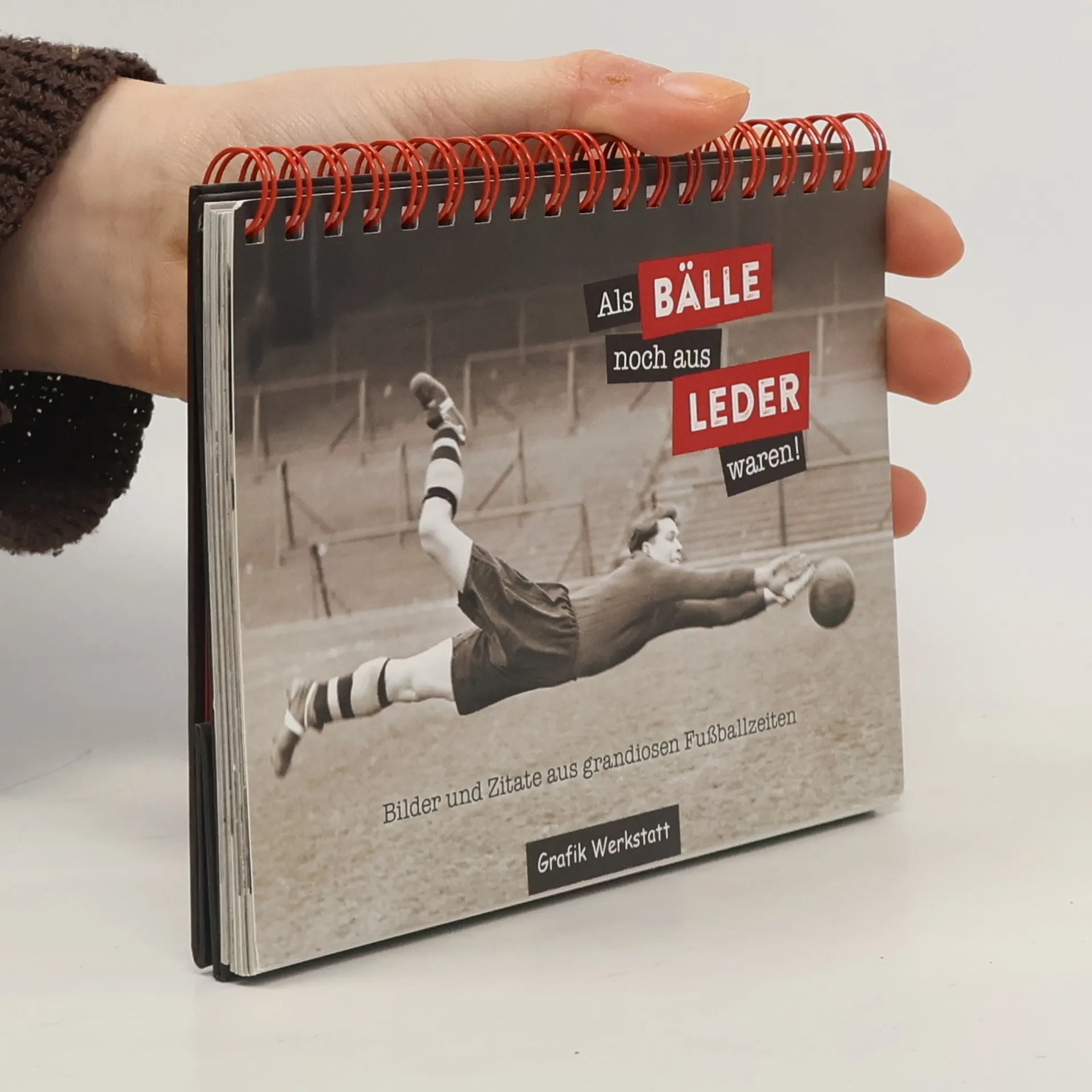 Eine wahre Freude für alle Fußball-Fans: Dieses Spiralbuch punktet mit Bildern und Zitaten aus grandiosen Fußballzeiten. Jede Bild-Text-Kombination ist ein echter Treffer, der nicht nur Sportsfreunde zum Lachen bringt. Witziges Geschenk für alle Fußballbegeisterten. 52 unvergessliche Schnappschüsse und weltklasse Zitate rund um das runde Leder. Ob Retro-Fan, Sportsfreund, Spaßvogel, Sprücheklopfer oder Romantiker - für jeden Typ und jede Gelegenheit findet sich in unserem Spiralbücher-Regal das passende Schätzchen. Die kleinen Hingucker sind beidseitig liebevoll gestaltet mit wunderschönen Fotografien und dazu passend ausgewählten Texten.