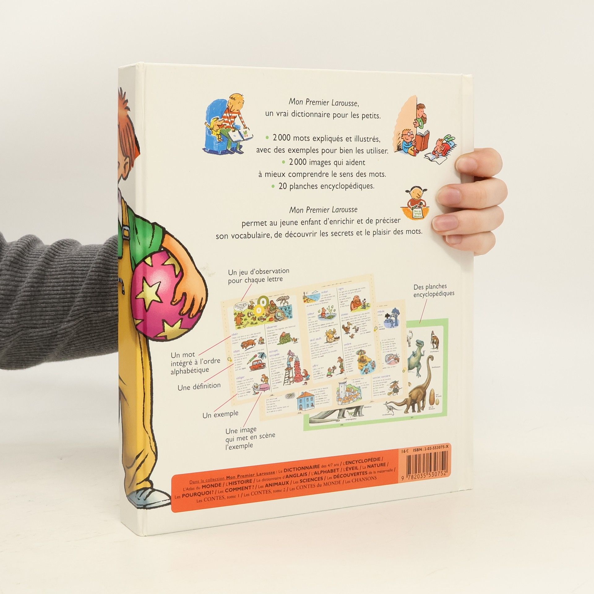 Mon premier Larousse, un vrai dictionnaire pour les petits. 2000 mots expliqués et illustrés, avec des exemples pour bien les utiliser. 2000 images qui aident à mieux comprendre le sens des mots. 20 planches encyclopédiques. Mon premier Larousse permet au jeune enfant d'enrichir et de préciser son vocabulaire, de découvrir les secrets et le plaisir des mots.